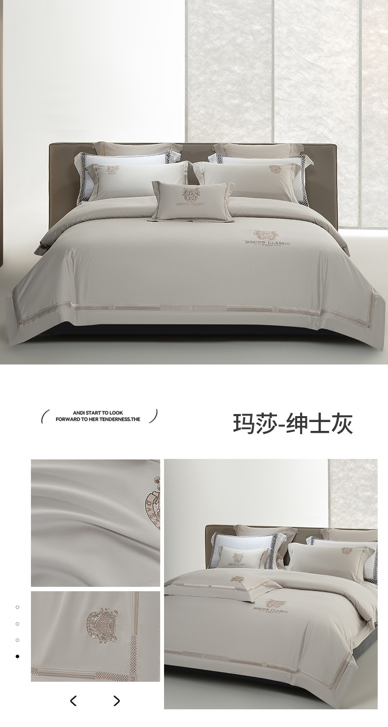 商品名称:高大尚婚庆馆 2025新款长绒棉磨毛高端绣花四件套 玛莎 绅士灰