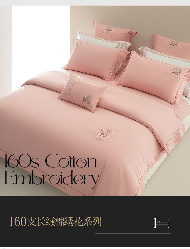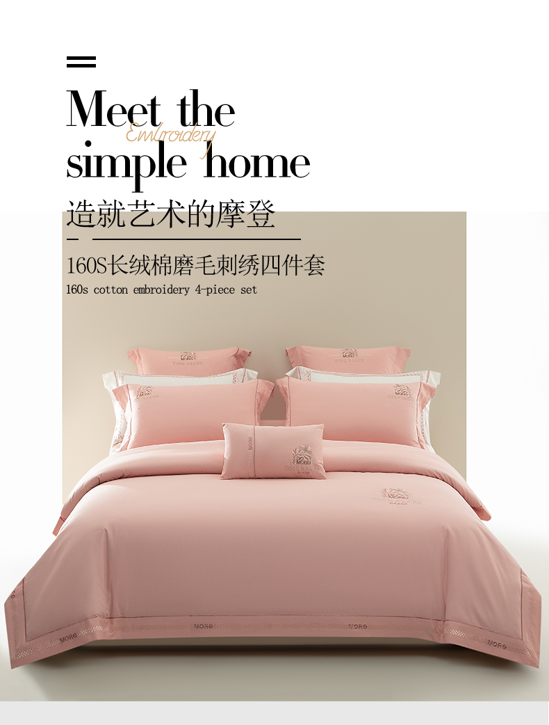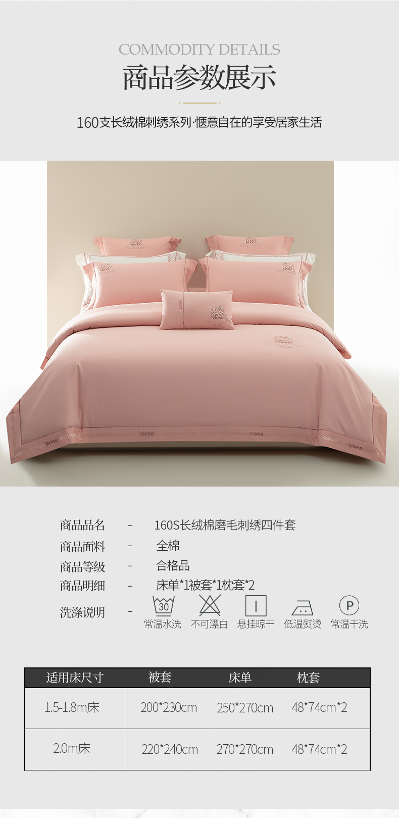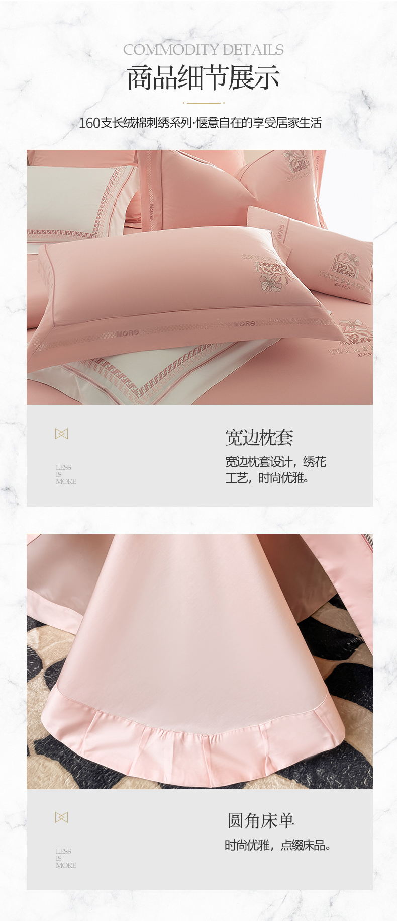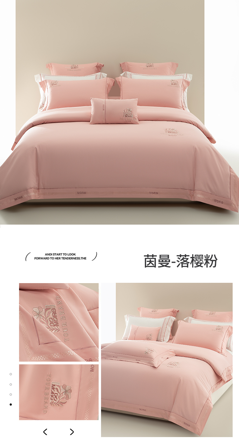 商品名称:高大尚婚庆馆 2025新款长绒棉磨毛高端绣花四件套 茵曼 落樱粉