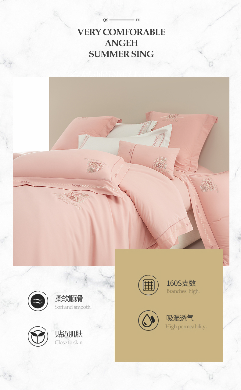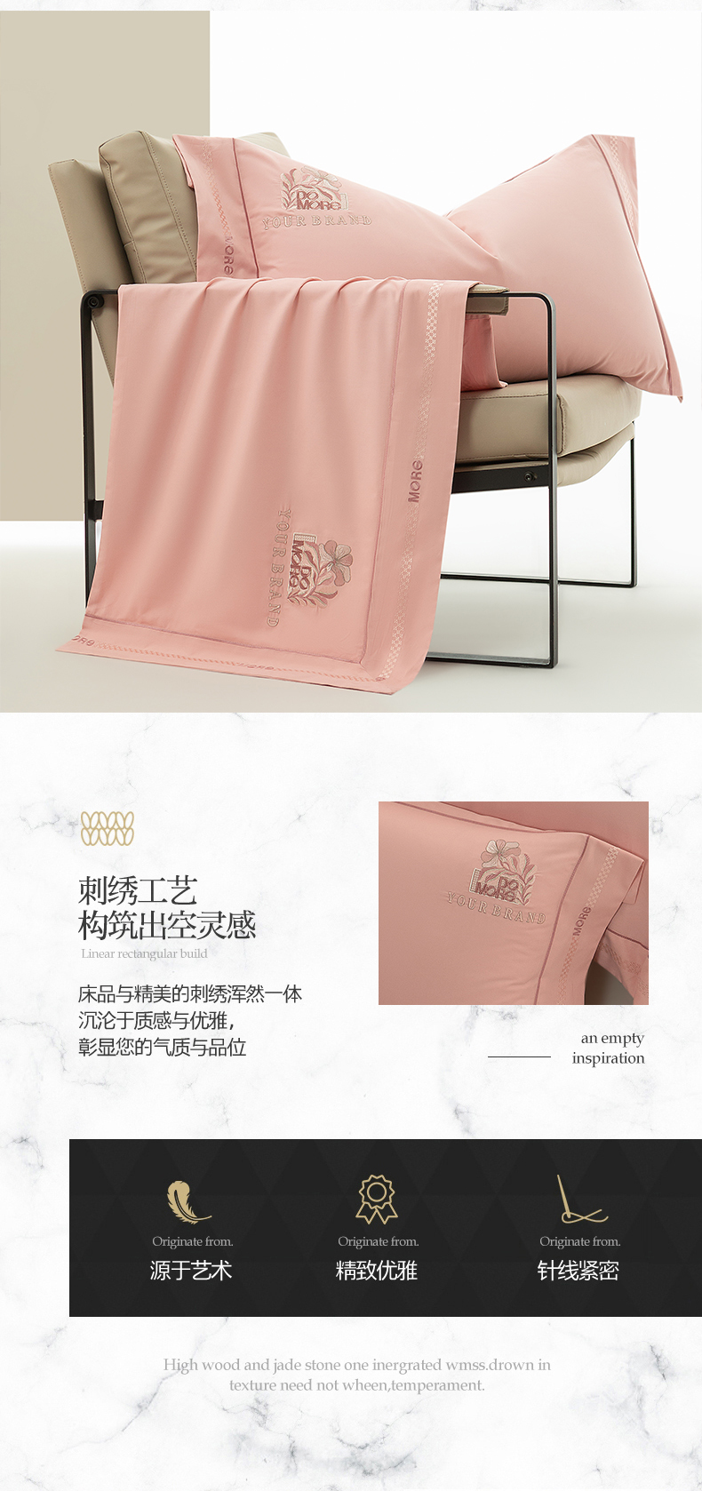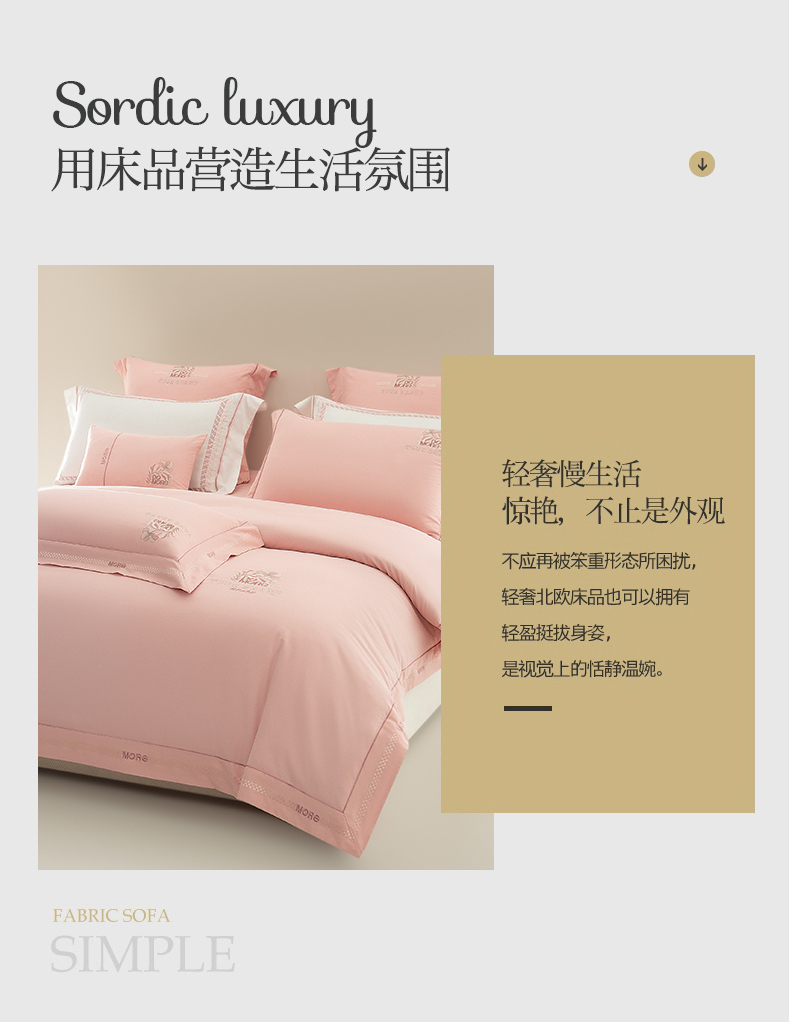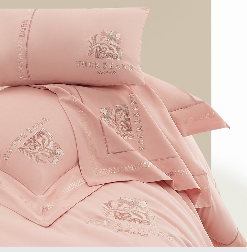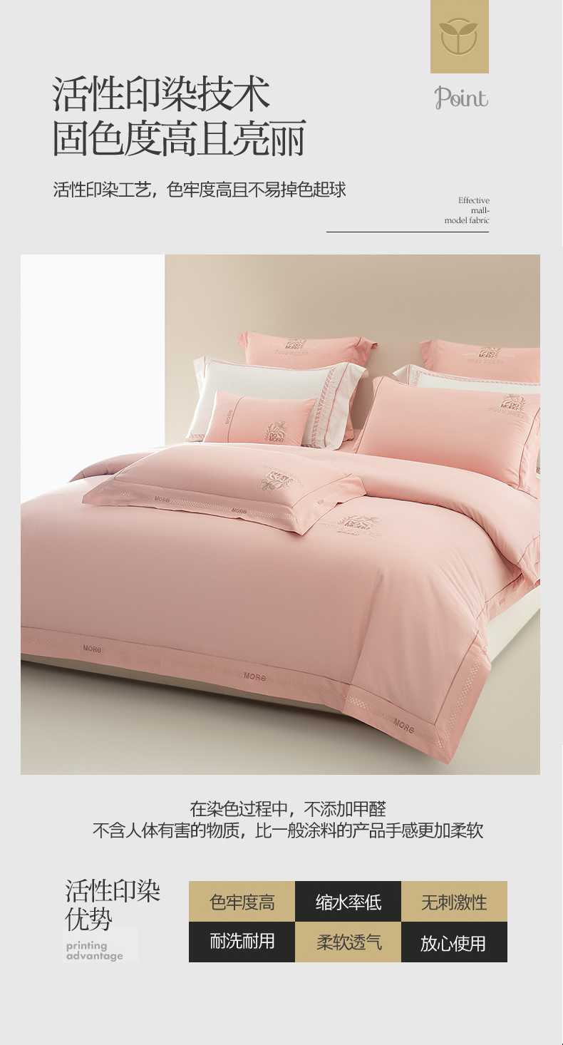 商品名称:高大尚婚庆馆 2025新款长绒棉磨毛高端绣花四件套 茵曼 落樱粉