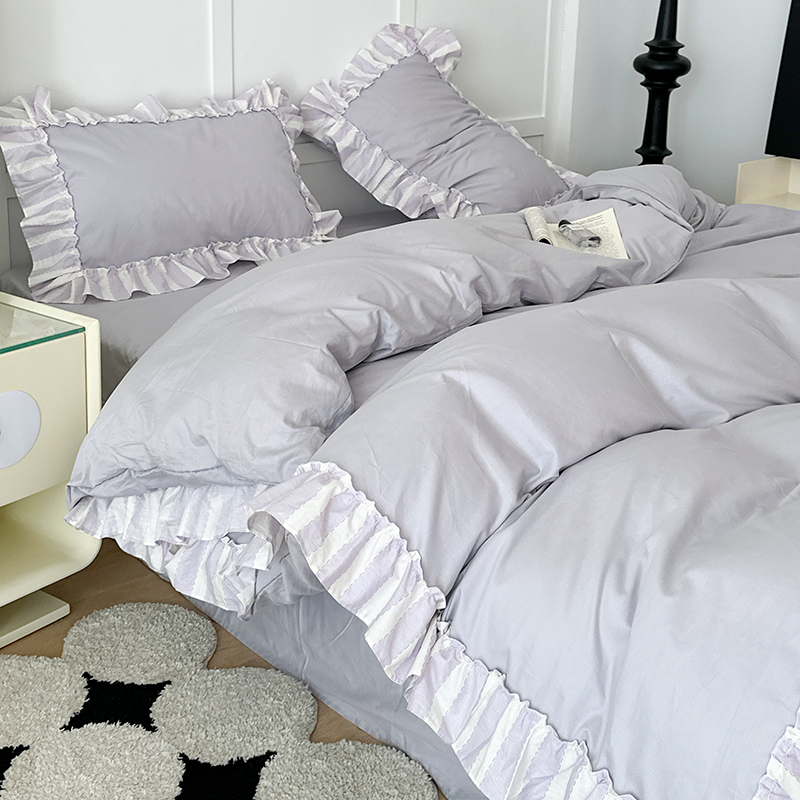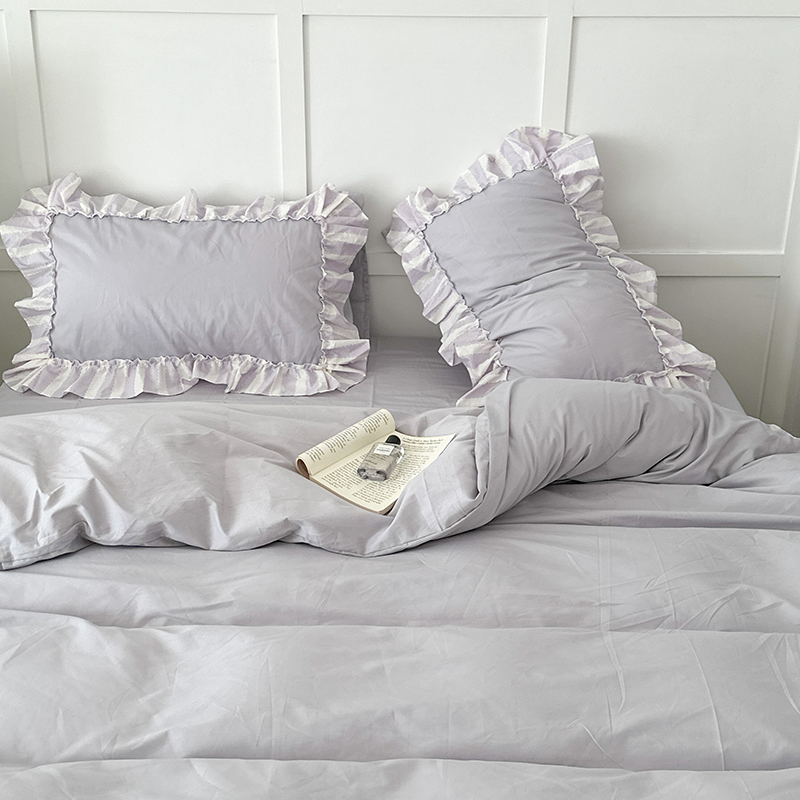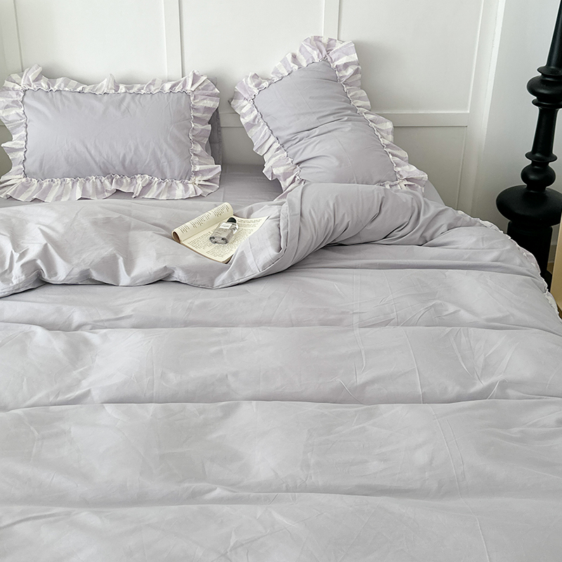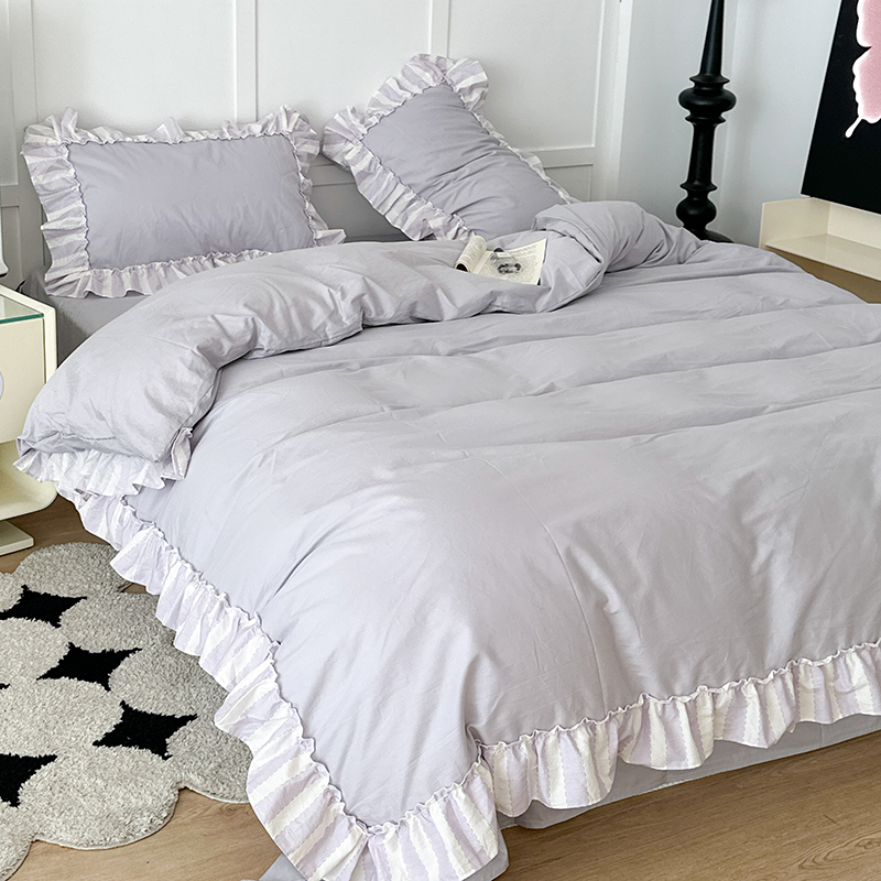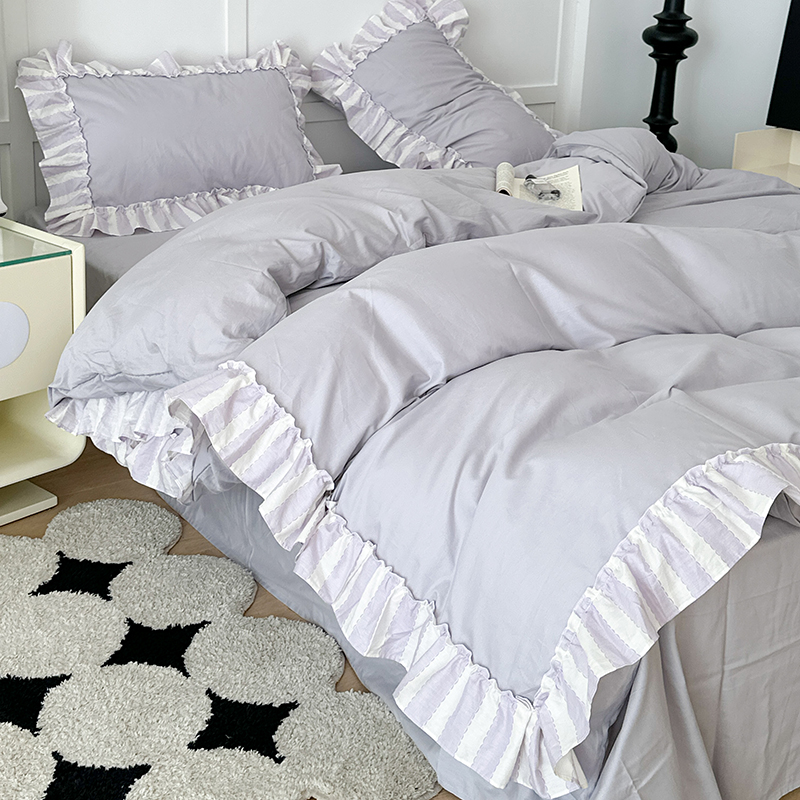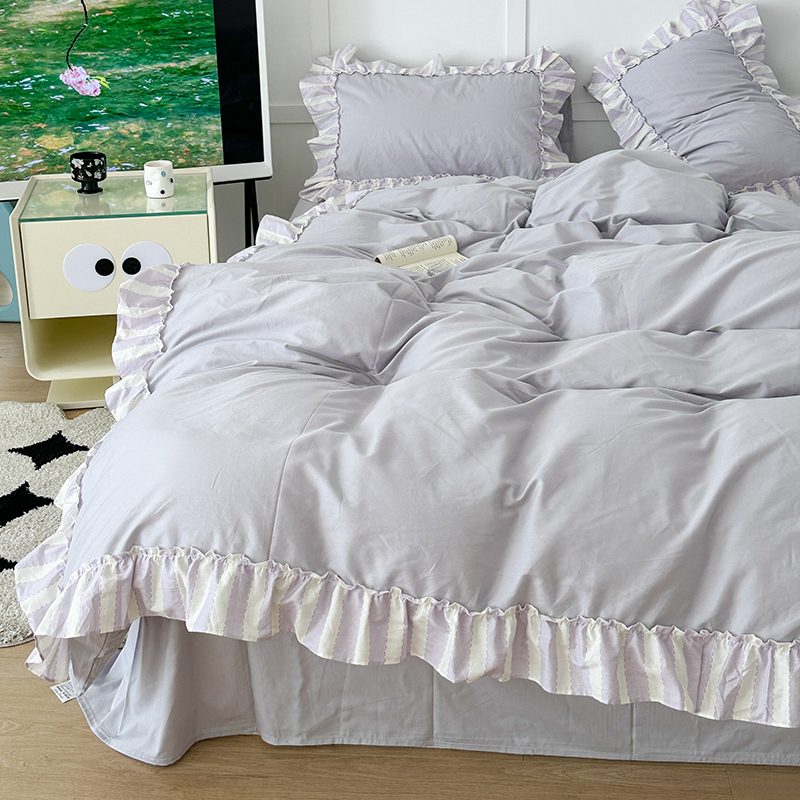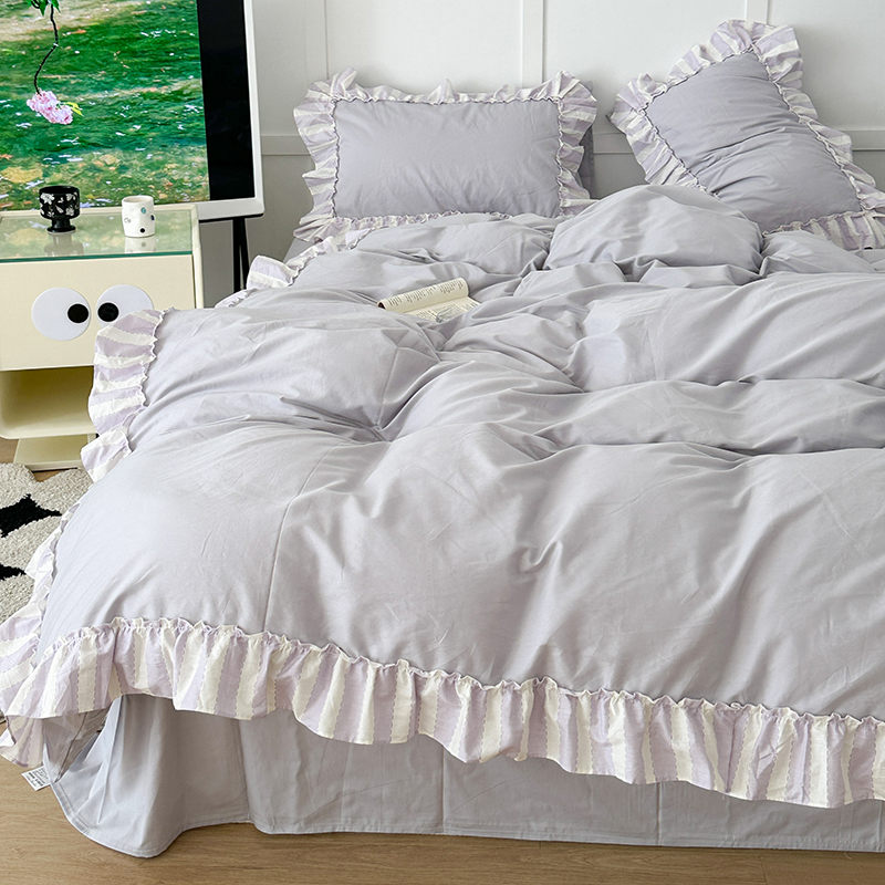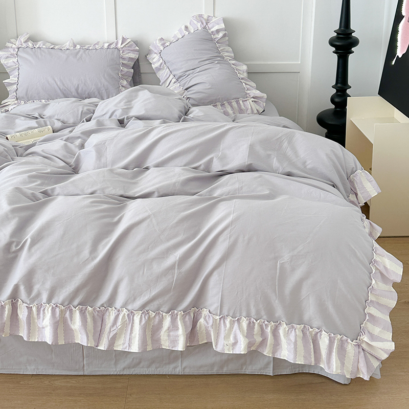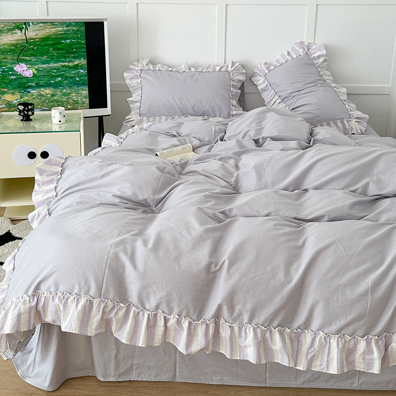 商品名称:昔可家纺 2024新款贴边纯色条纹四件套系列 柔雾紫条