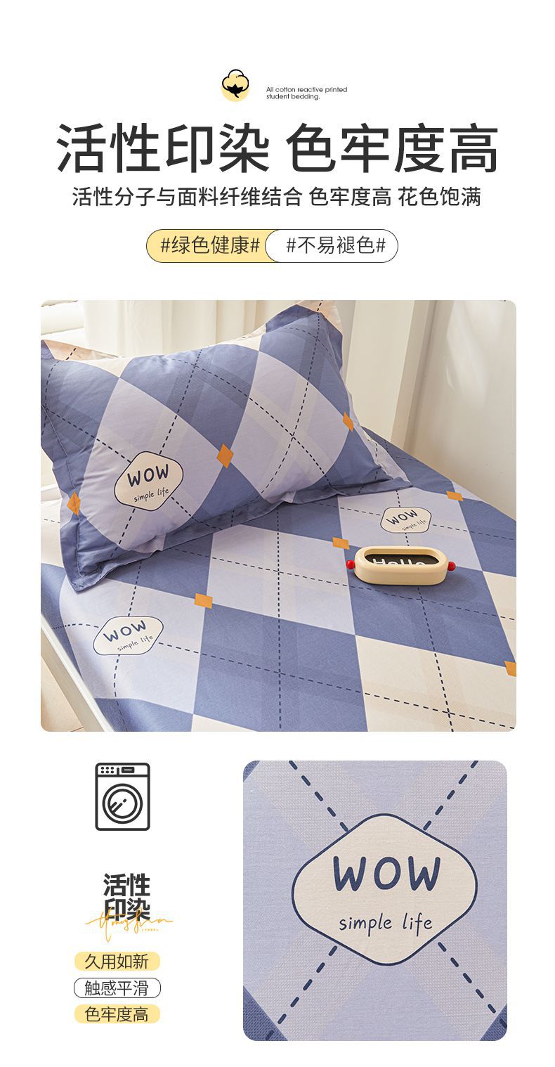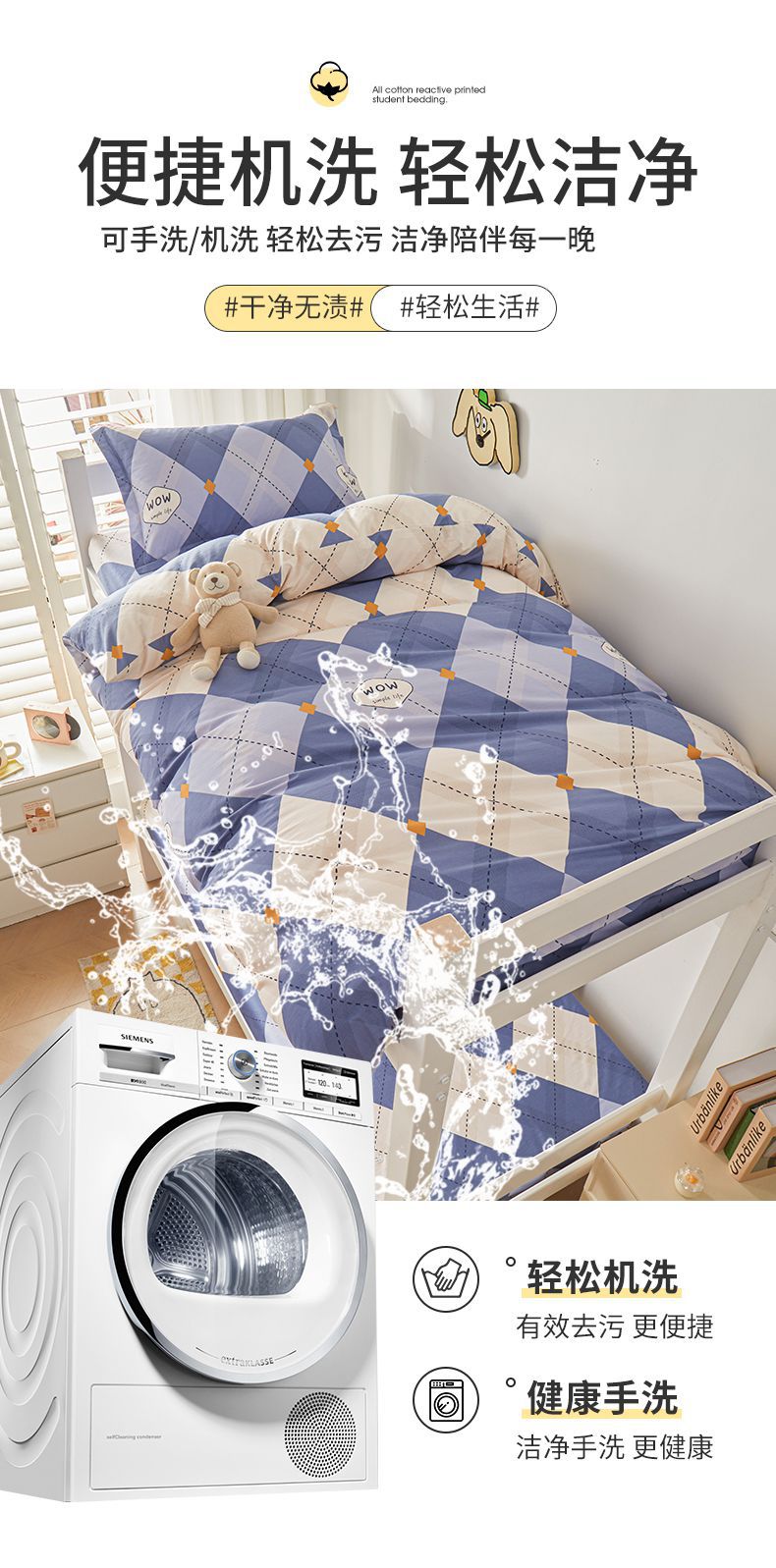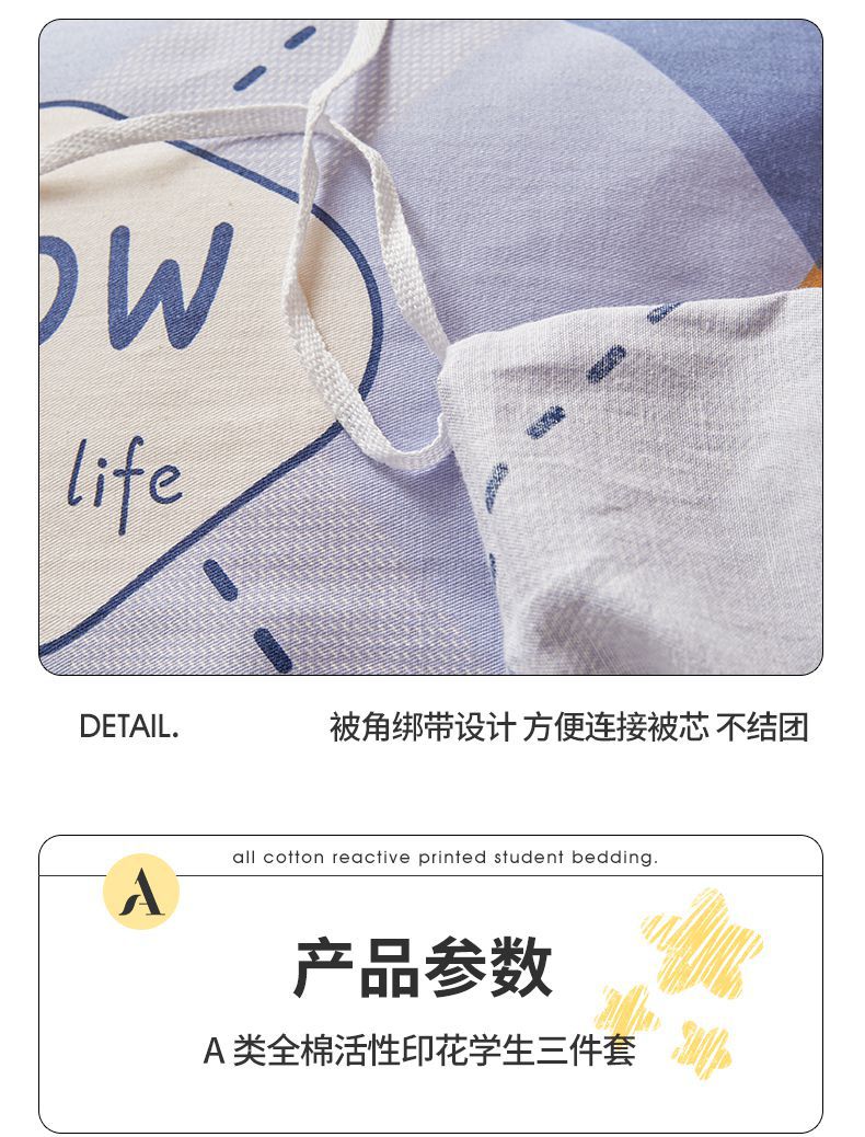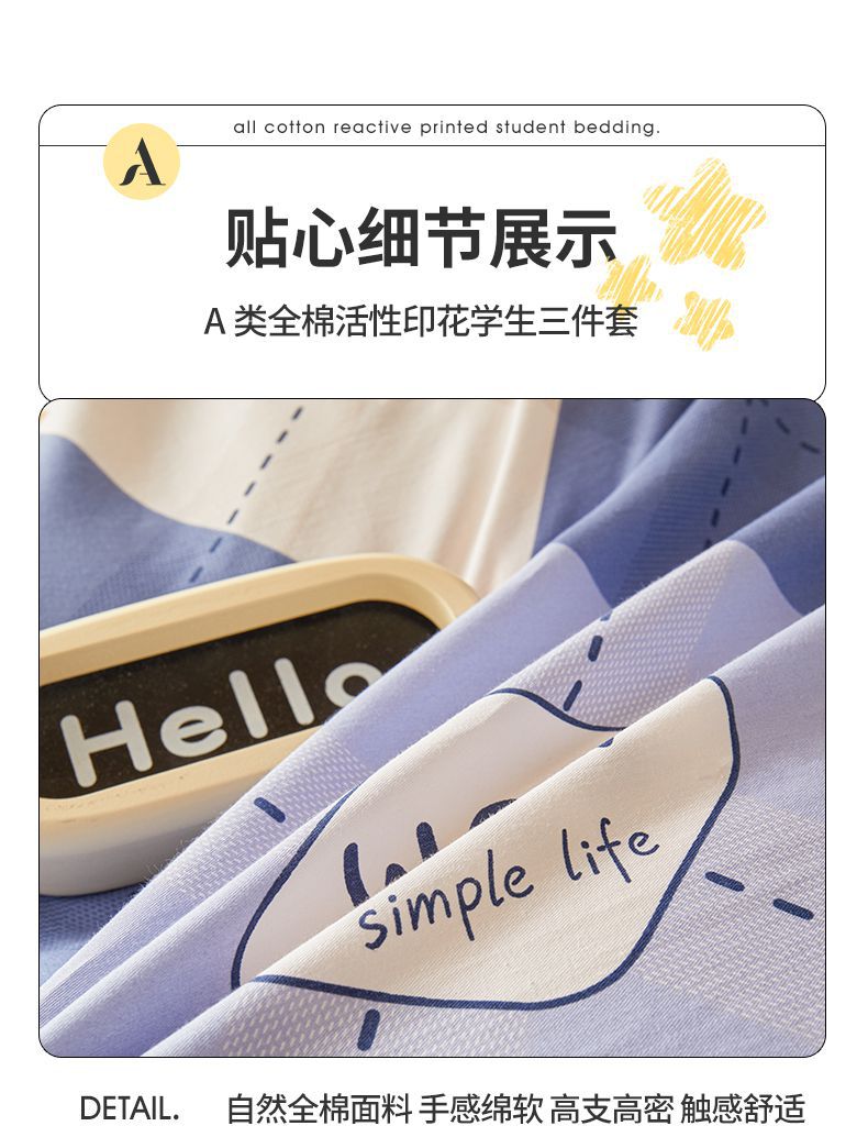 当前位置: 91家纺网 > 商品网购 > 床品套件 > 三件套 > 名优家纺 2024新款全棉三件套学生宿舍上下铺套件 意林蓝色