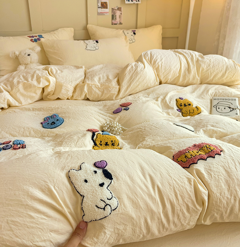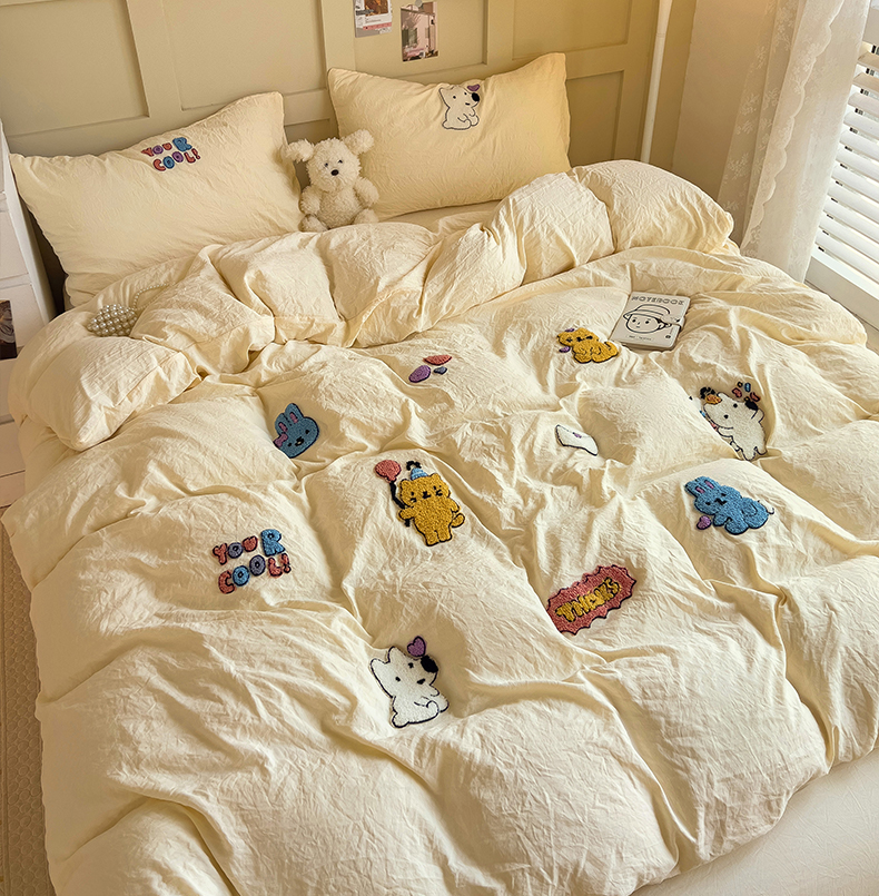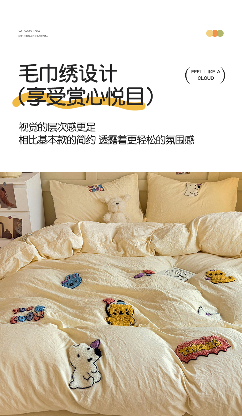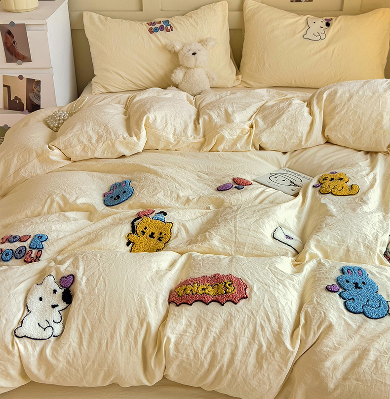 (总)韩巢家纺 2026新款水洗棉毛巾绣四件套,幸运猫-浅蓝,幸运猫-奶黄,幸运猫-浅粉,幸运熊-浅粉,幸运熊-浅绿黄,幸运熊-浅蓝,哈哈狗-浅蓝,哈哈狗-浅绿黄,小精灵-浅粉,小精灵-浅蓝