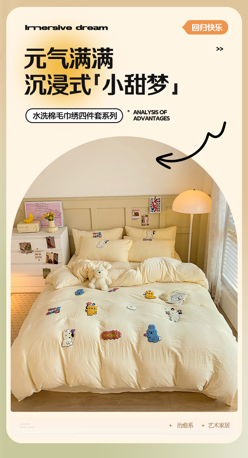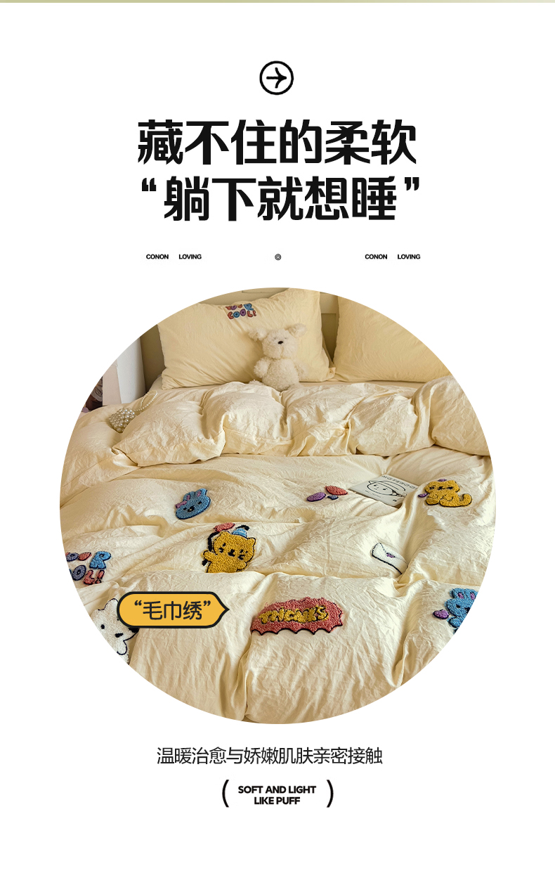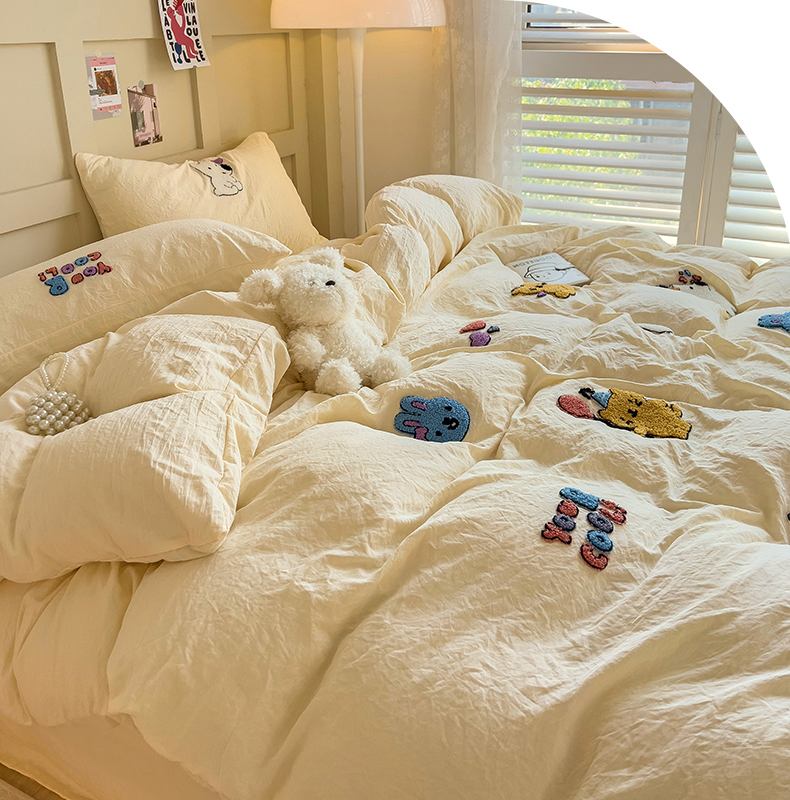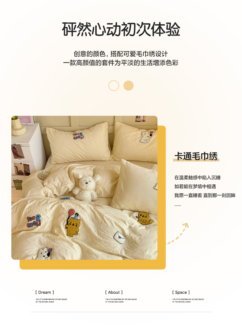 (总)韩巢家纺 2026新款水洗棉毛巾绣四件套,幸运猫-浅蓝,幸运猫-奶黄,幸运猫-浅粉,幸运熊-浅粉,幸运熊-浅绿黄,幸运熊-浅蓝,哈哈狗-浅蓝,哈哈狗-浅绿黄,小精灵-浅粉,小精灵-浅蓝