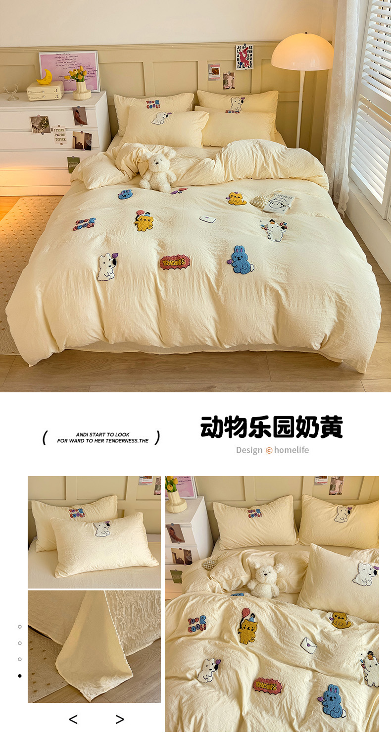 • 91家纺网 家纺一手货源 找家纺 韩巢家纺 2024新款四季通用超柔水洗棉毛巾绣单件被套-动物乐园系列(提供卖家秀 ) 动物乐园奶黄