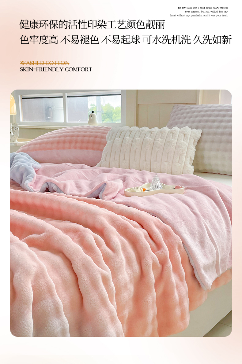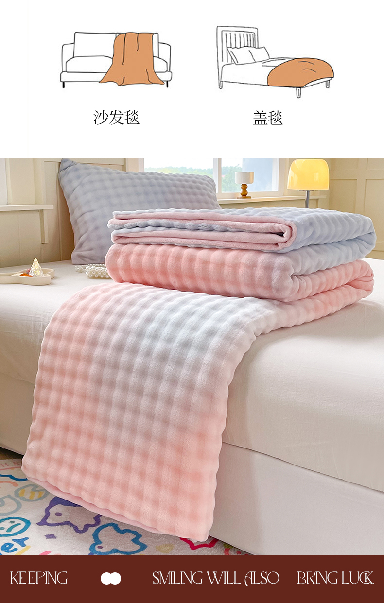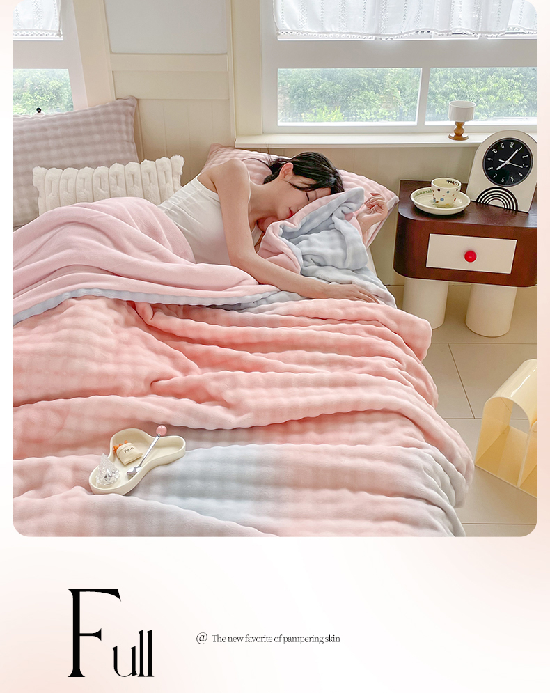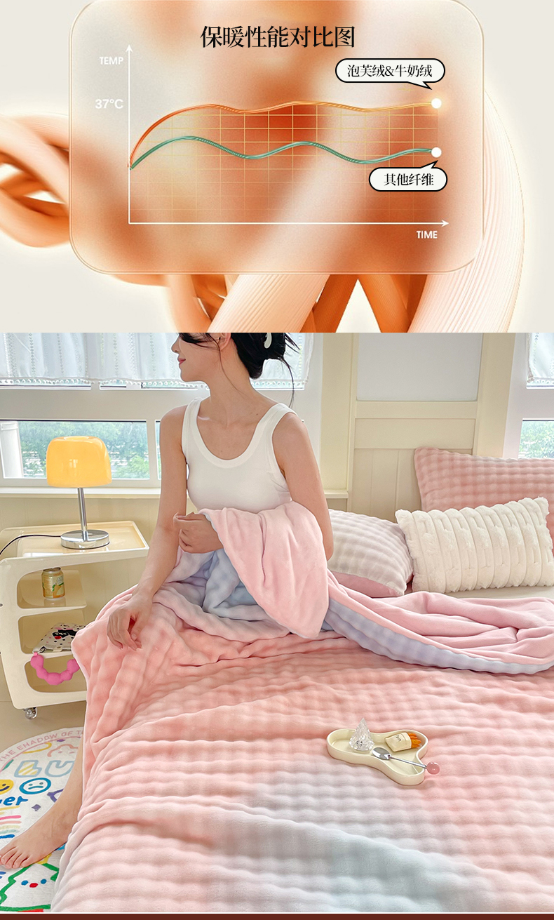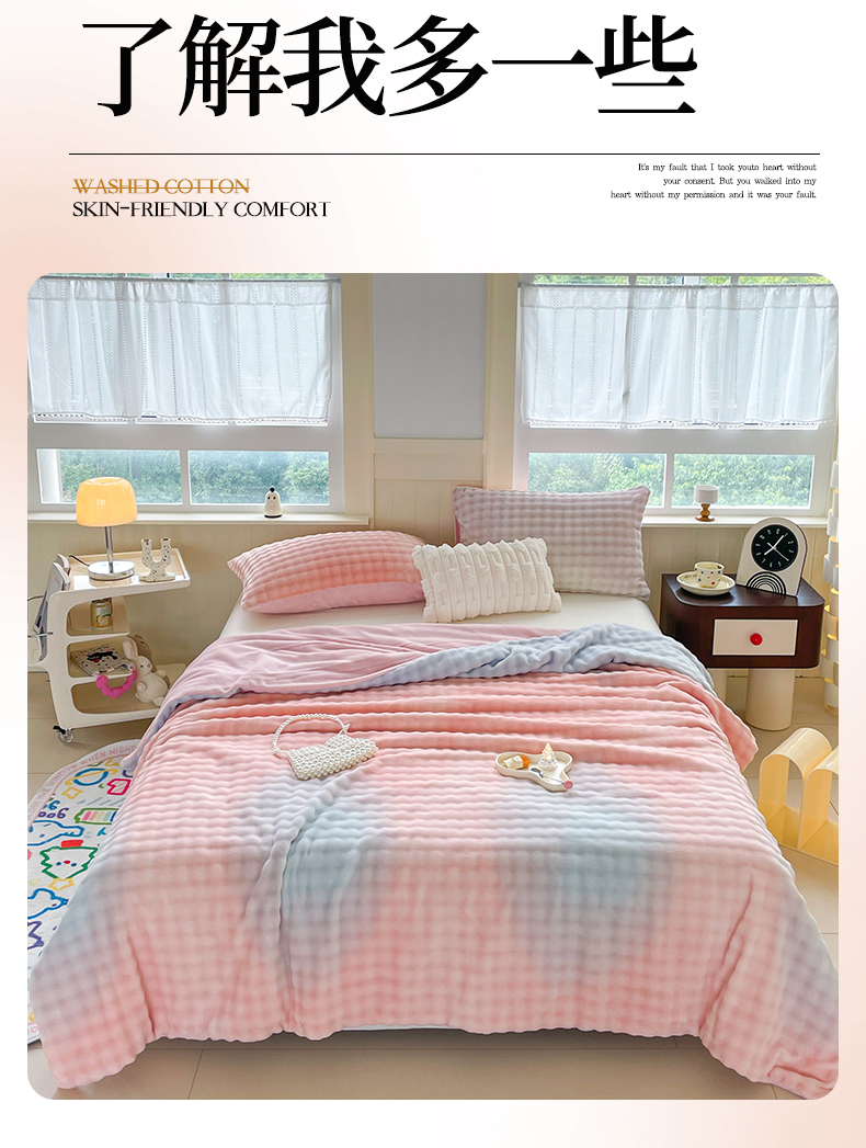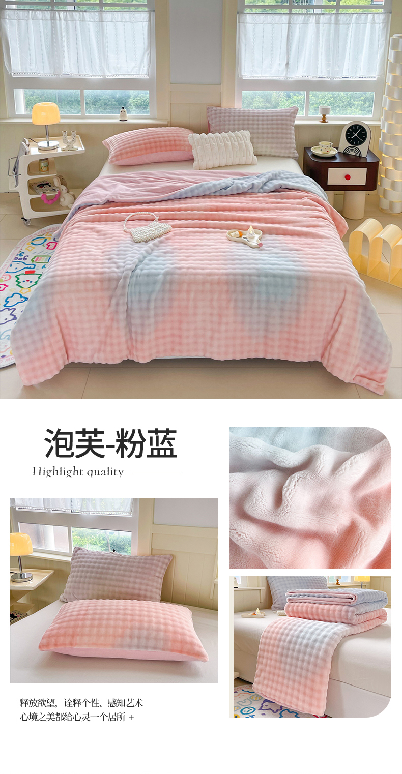 言熙居家纺 2024新款AB版多功能盖毯被套 泡芙-粉蓝