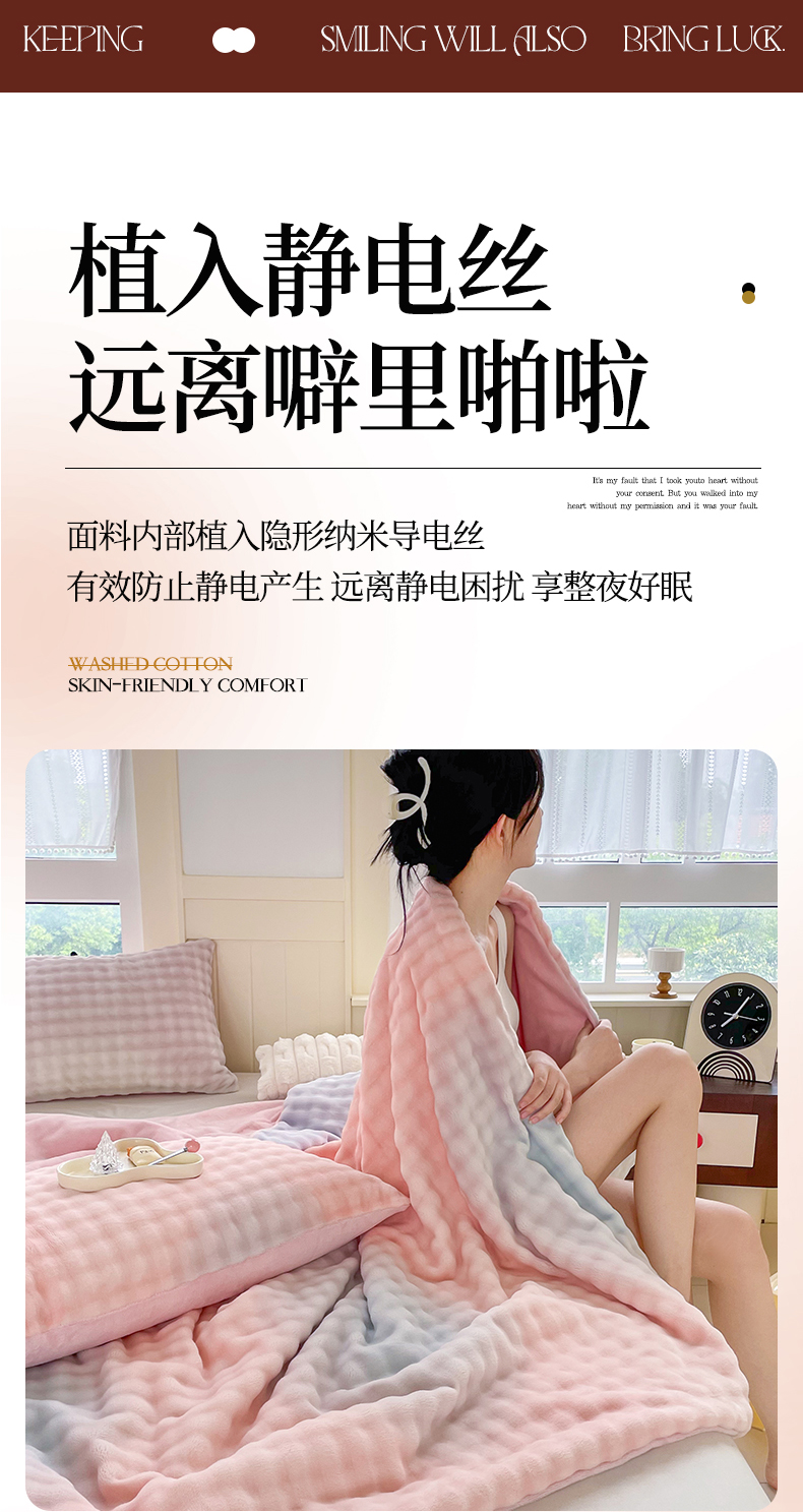 商品名称:言熙居家纺 2024新款AB版多功能盖毯被套 泡芙-粉蓝