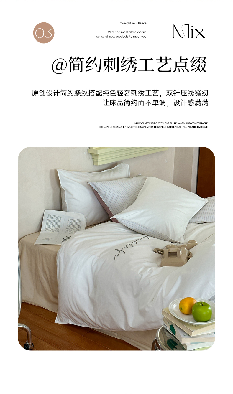 商品名称:时年家纺 2024新款40毛巾绣全工艺水洗全棉系列四件套(充值会员优惠5元) 象牙条