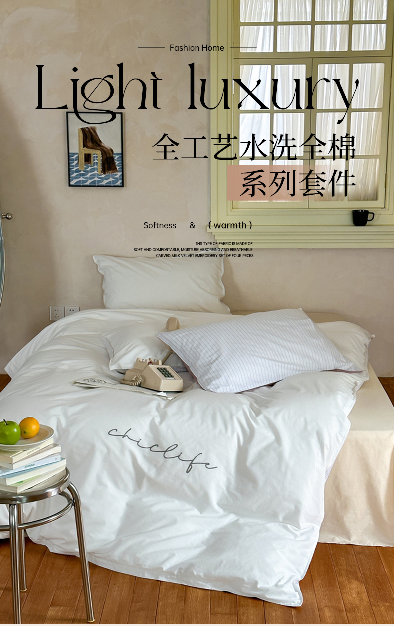 (总)时年 2022新款全棉水洗棉四件套嵌绳款,爱丽丝蓝(浅蓝),克莱因蓝(深蓝)