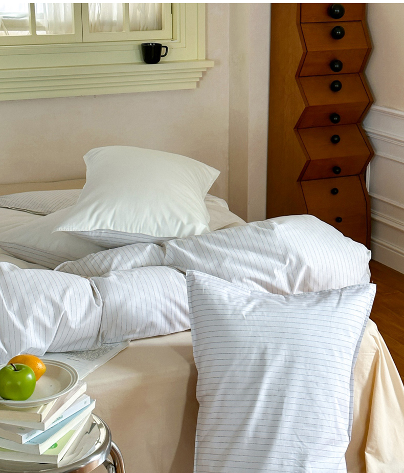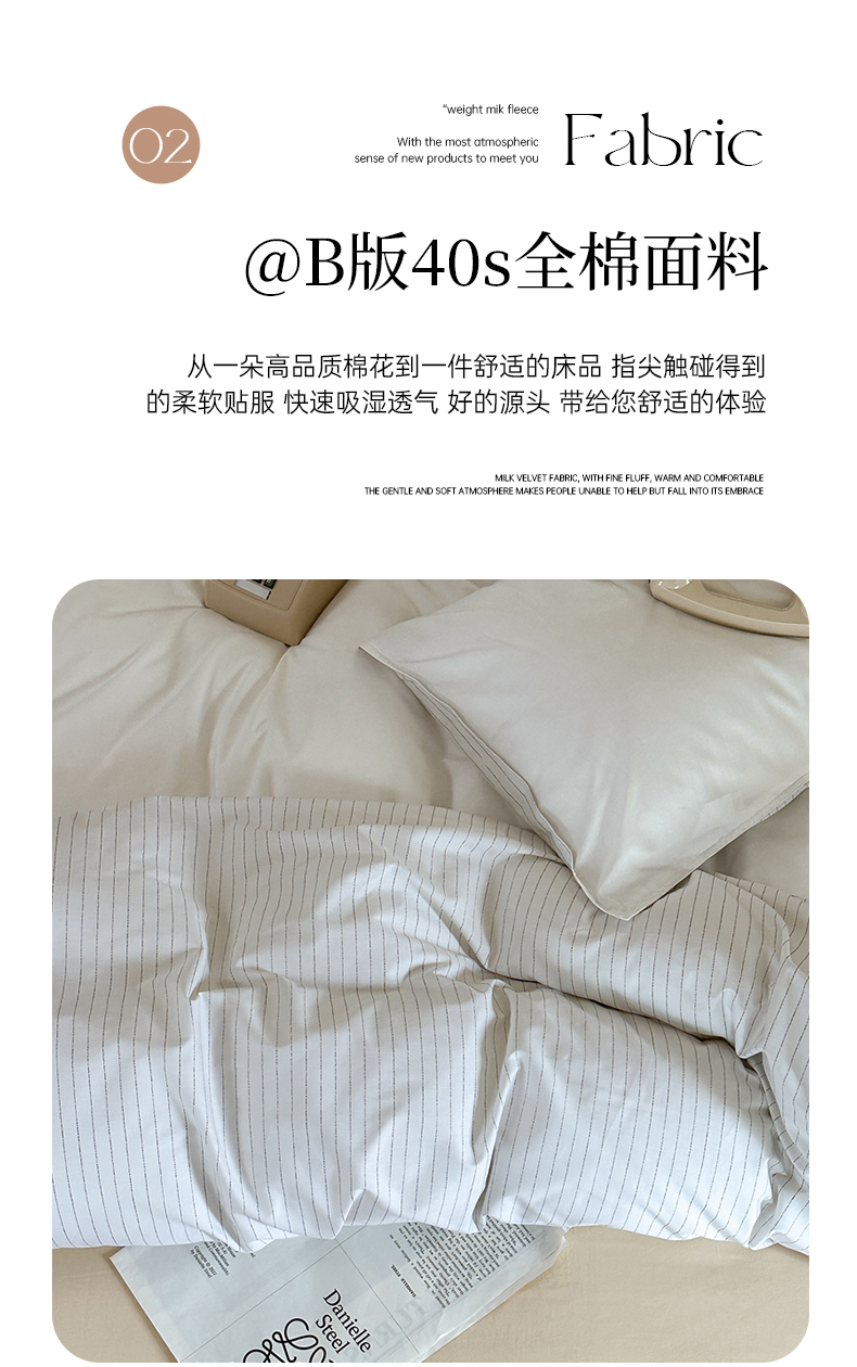 (总)时年2022新款全棉40支13372ins条纹款四件套,复古钴蓝,复古奶绿