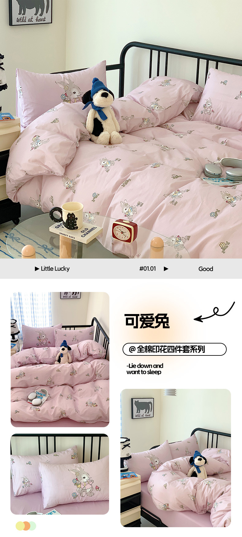 美乐迪家纺 2024新款全棉印花混搭系列四件套 可爱兔