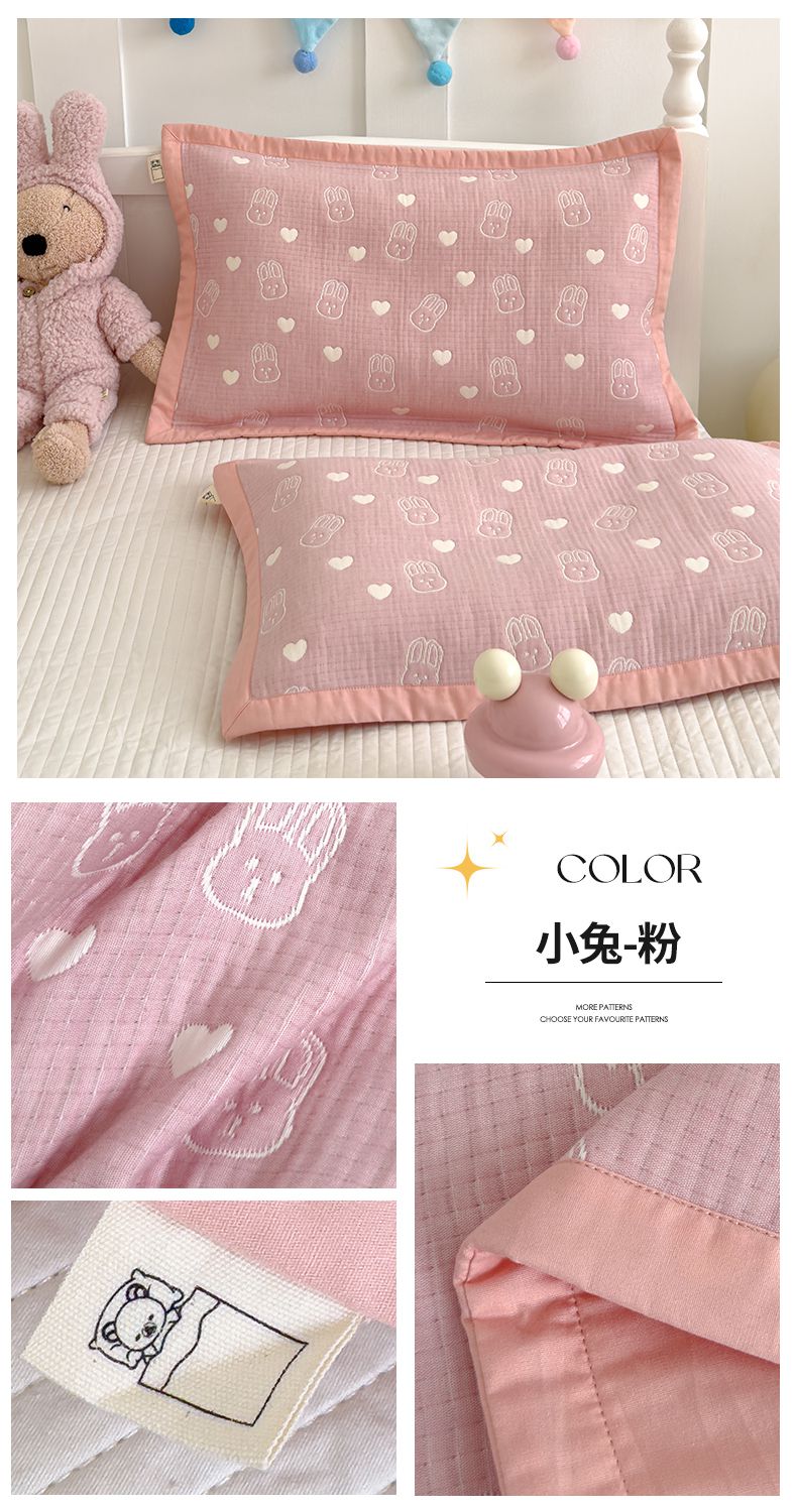 (总)2024新品色织全棉三层纱布枕套儿童夹棉枕头套成人纯棉纱布枕巾直播,小兔-黄,小兔-粉,小象-咖,小象-绿,小象-灰,小熊-粉,小熊-黄,小熊-绿