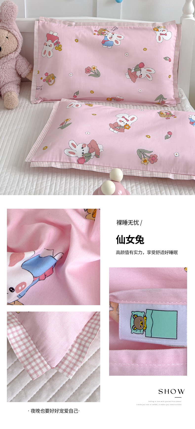 商品名称:2024新款A类133x72铂金全棉枕套枕头枕芯七彩童年系列 枕套+枕芯-棚拍图 仙女兔
