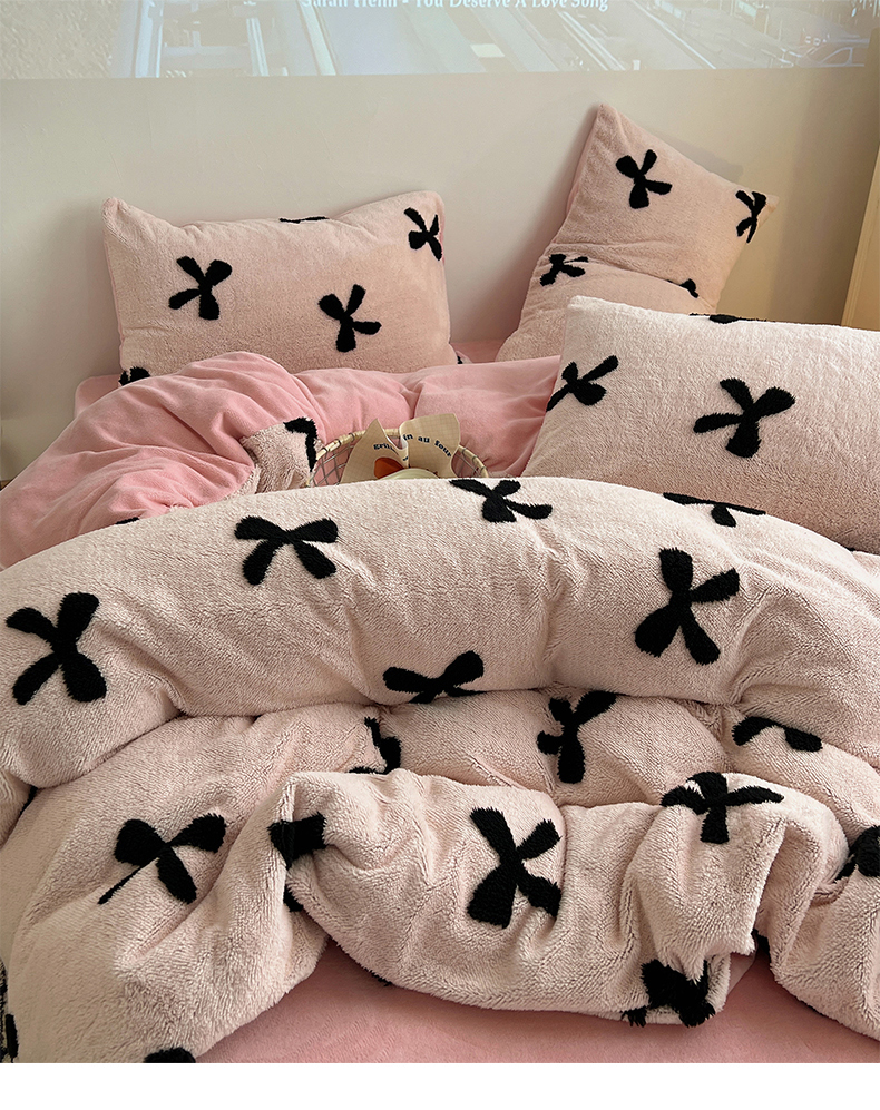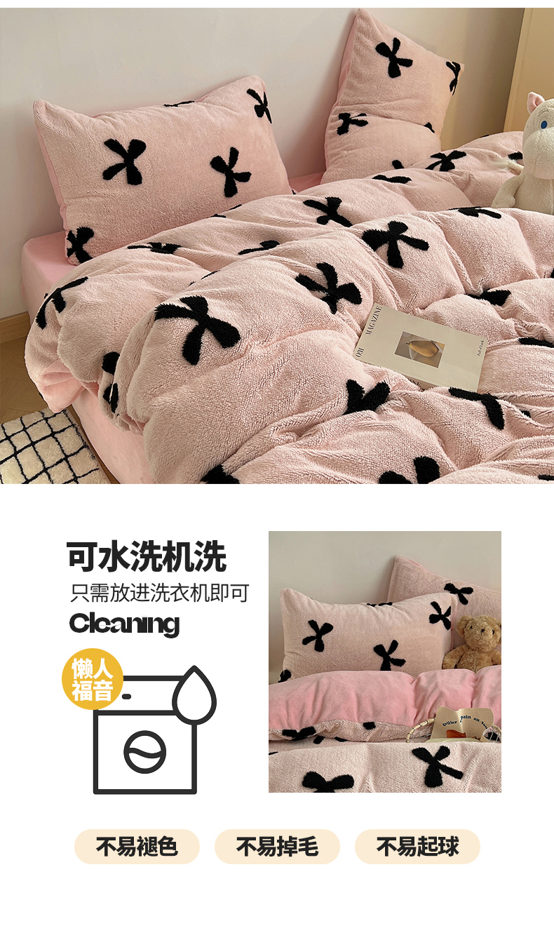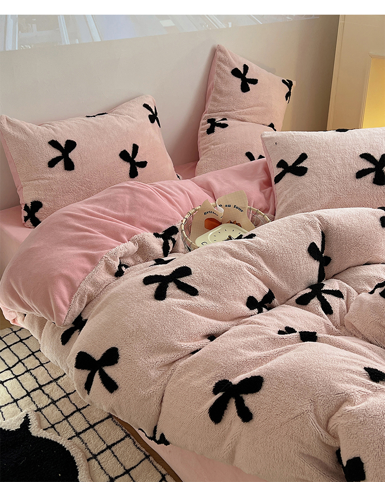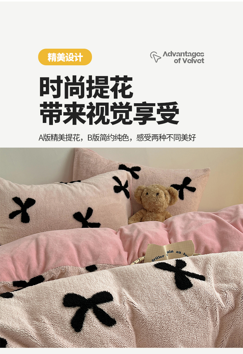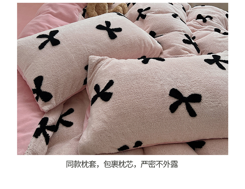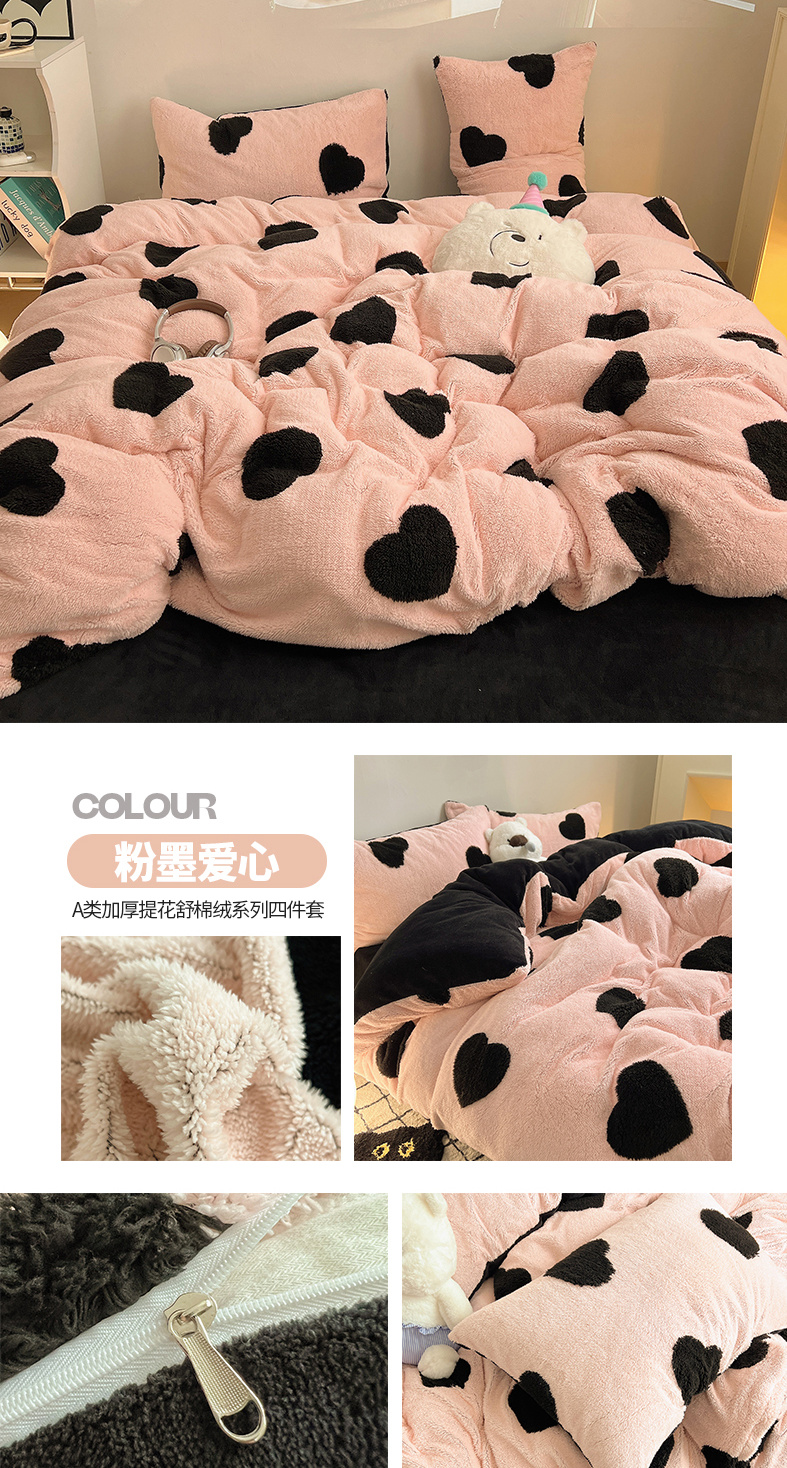 商品名称:(总)2024新款A类加厚色纱舒舒绒提花蝴蝶结爱心少女舒棉绒牛奶绒系列四件套
