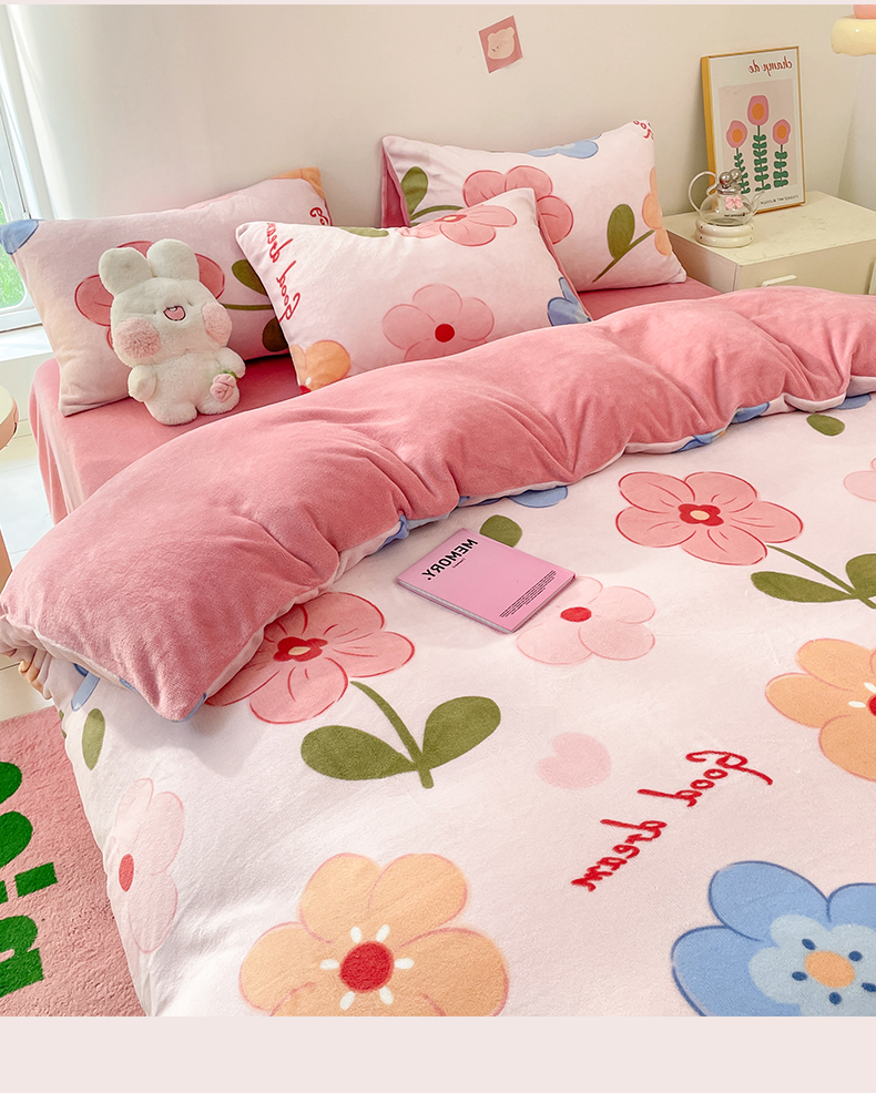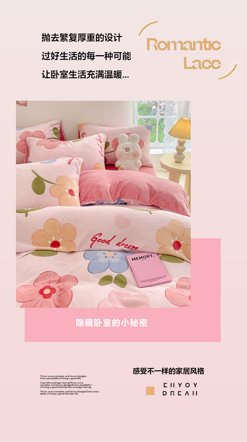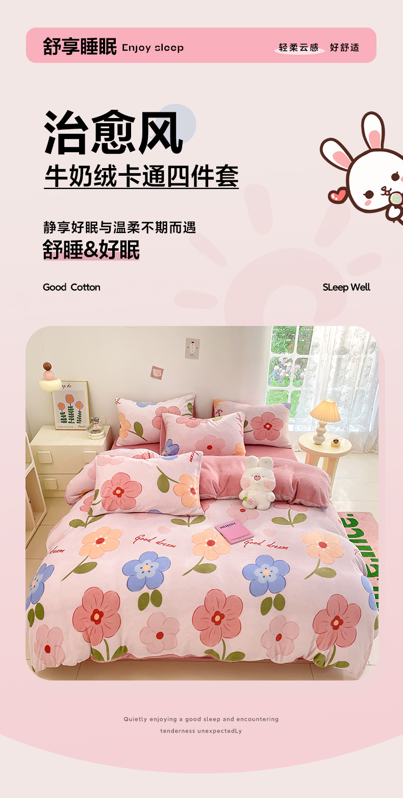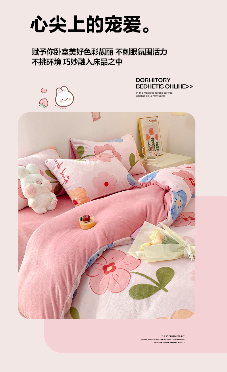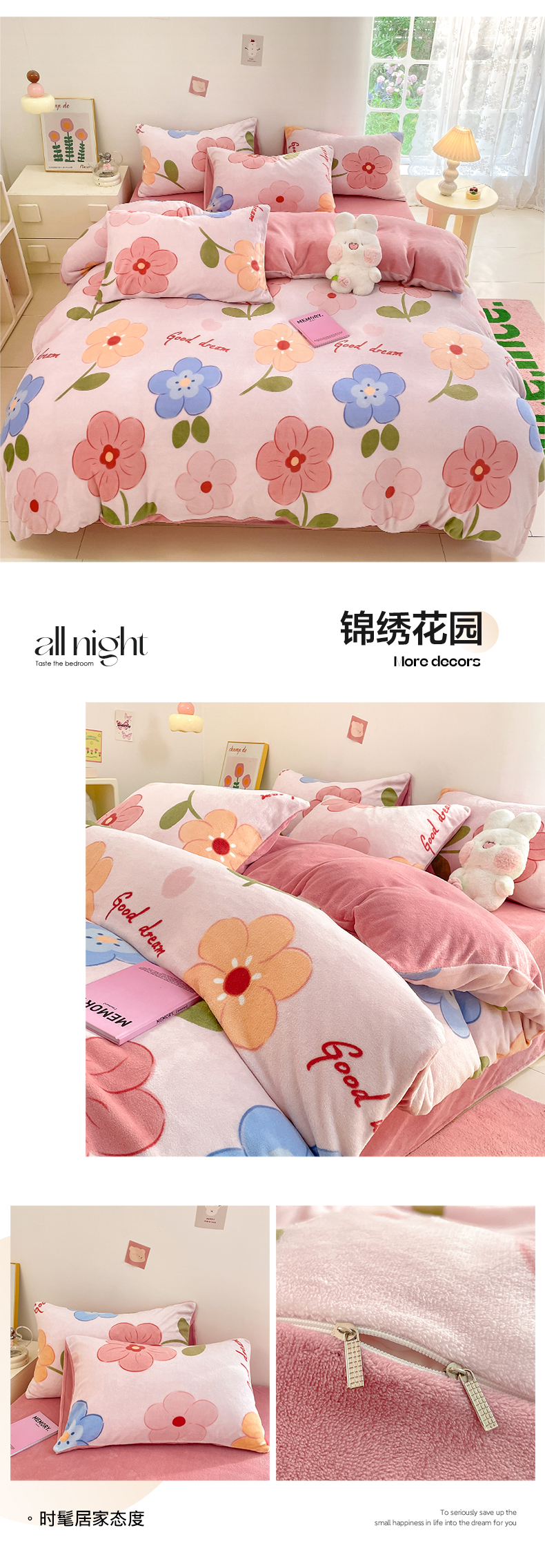 当前位置: 91家纺网 > 商品网购 > 床品套件 > 四件套 > 牛奶绒四件套 > 莱米家纺 2024新款7斤重牛奶绒卡通小版四件套系列 锦绣花园