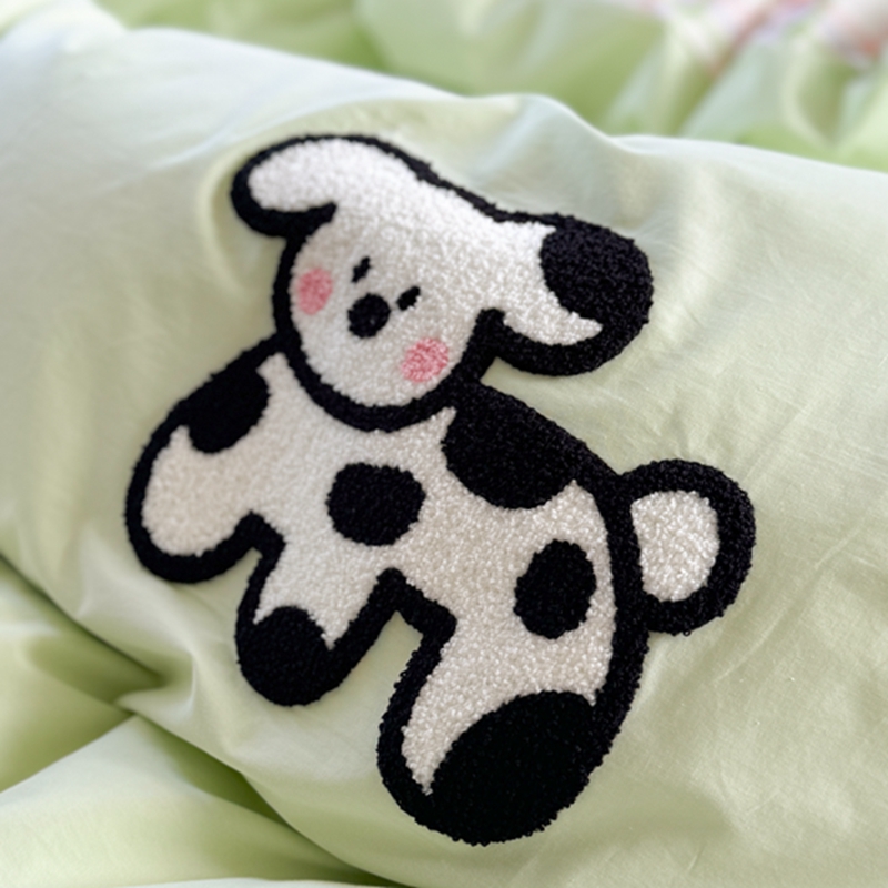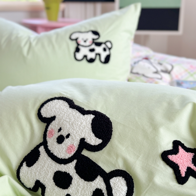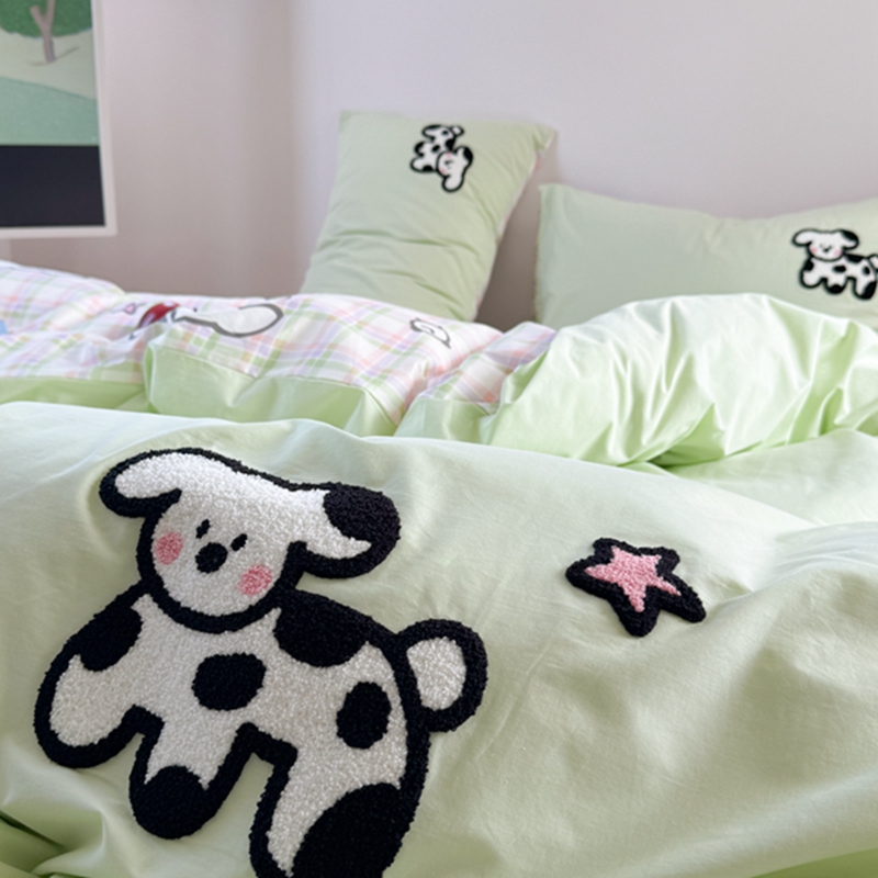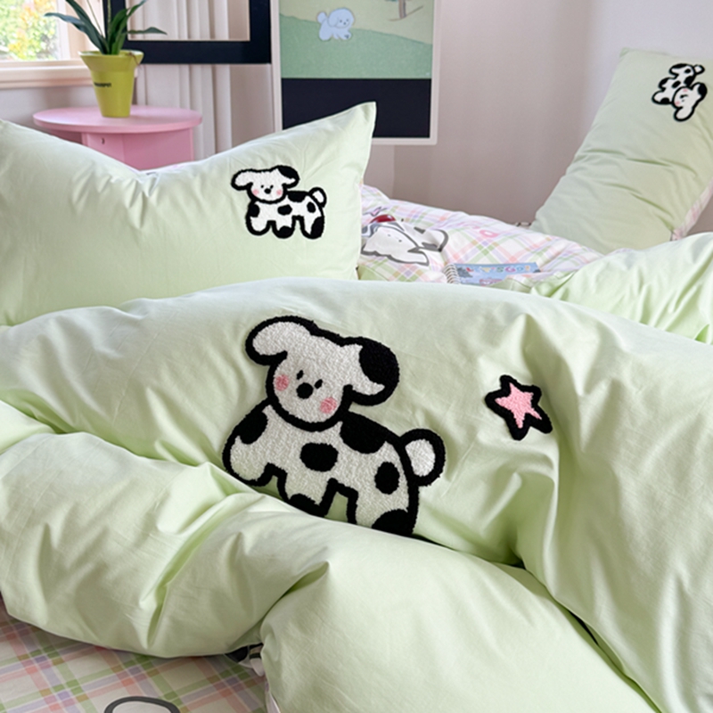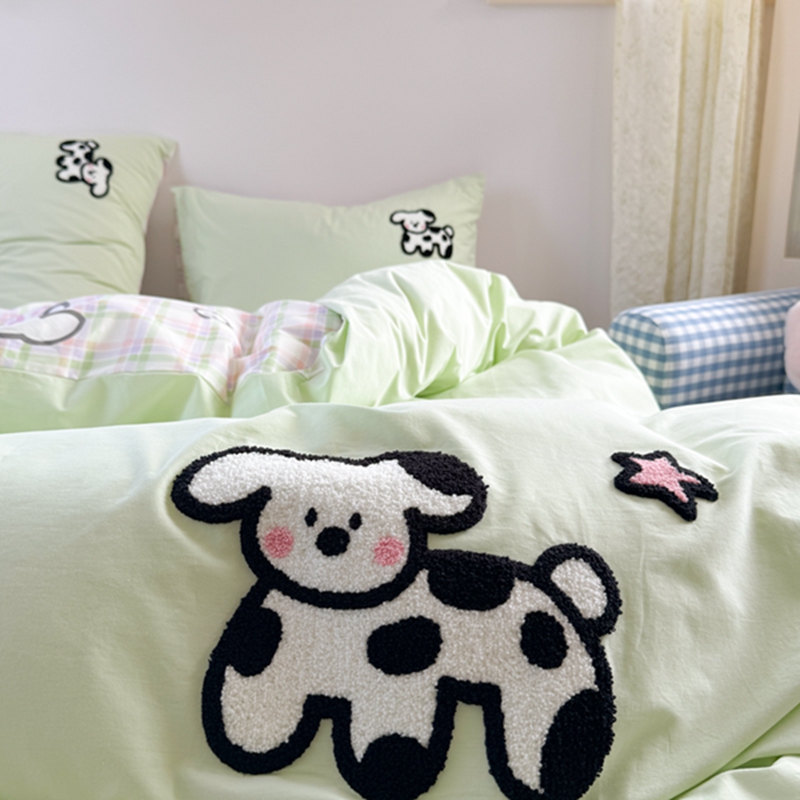 柚子 2024新款全棉水洗印加绣小可爱四件套 黑白狗
