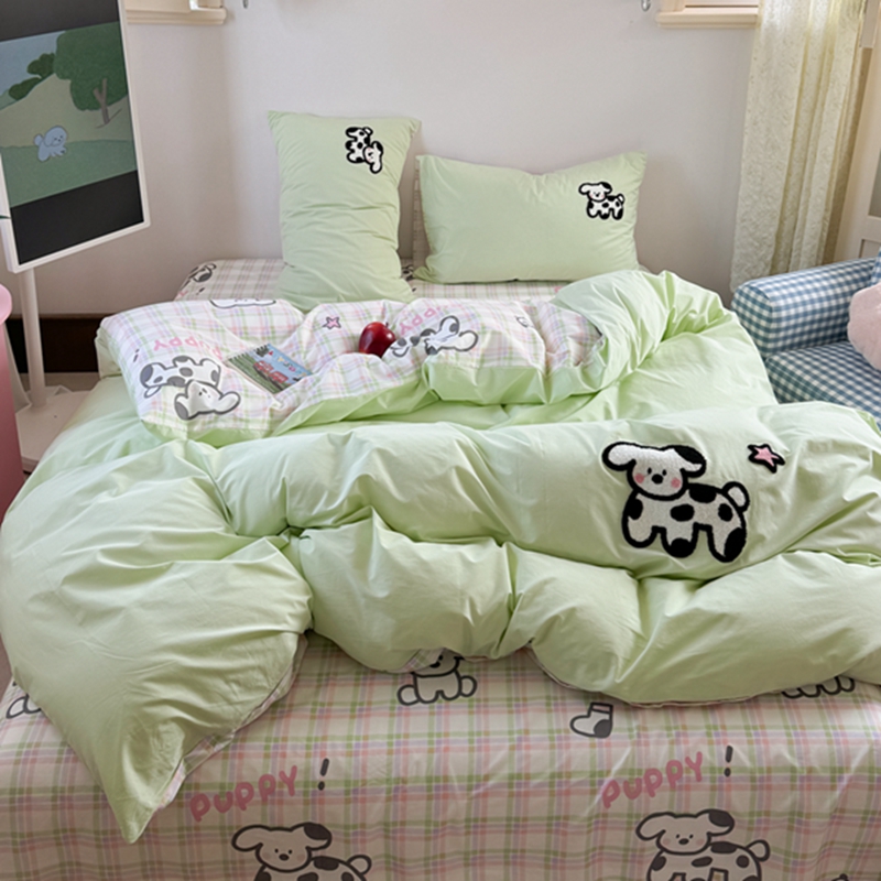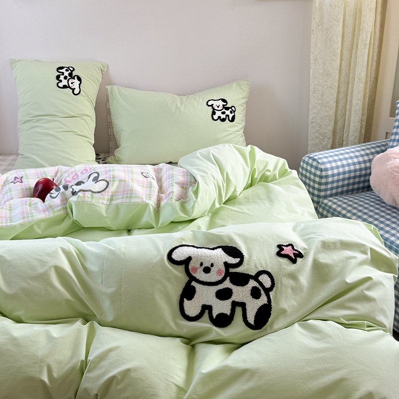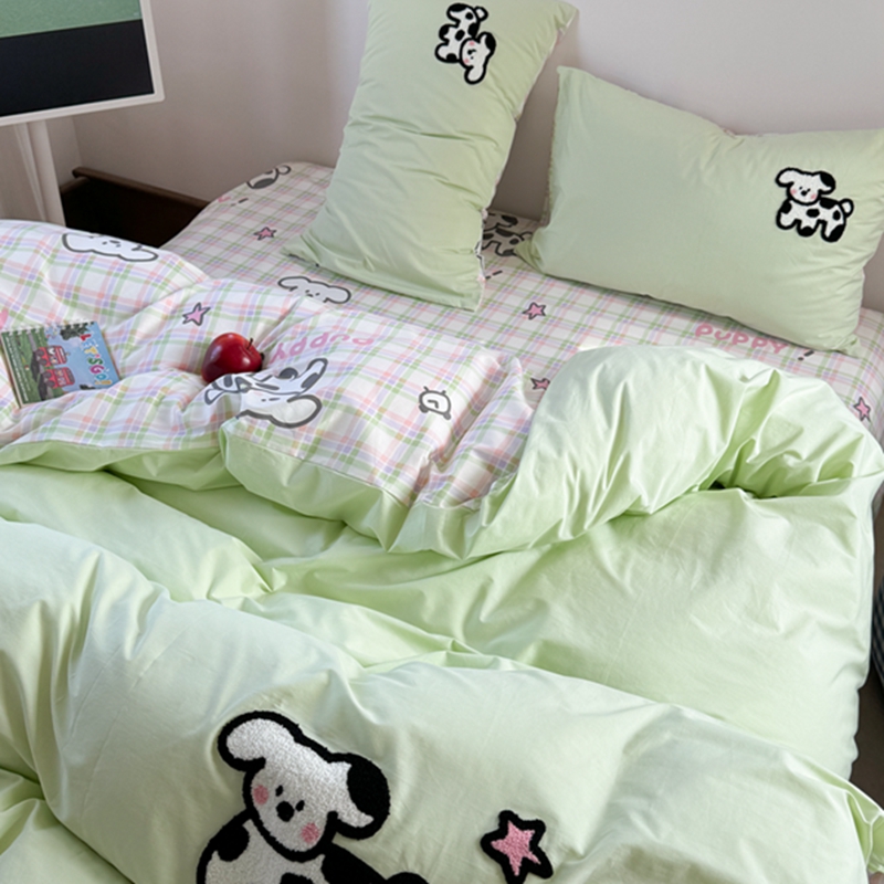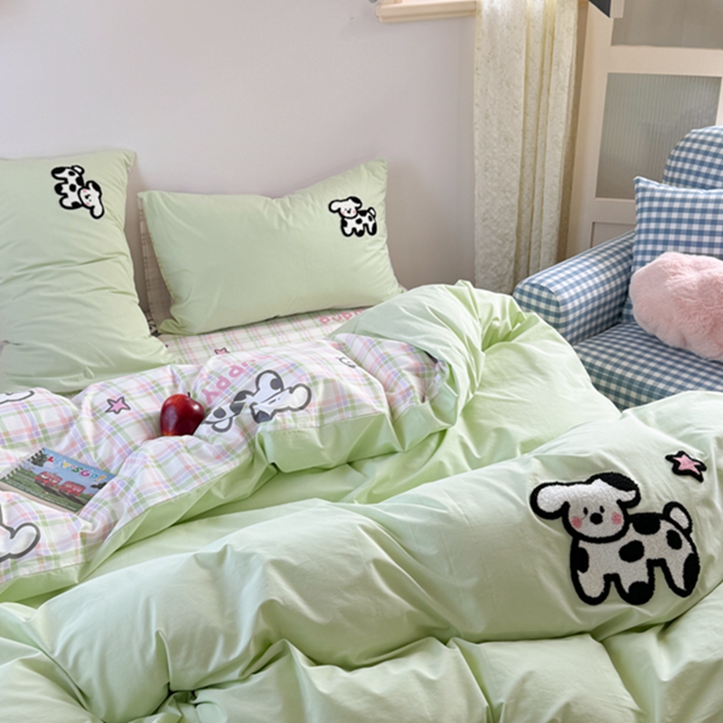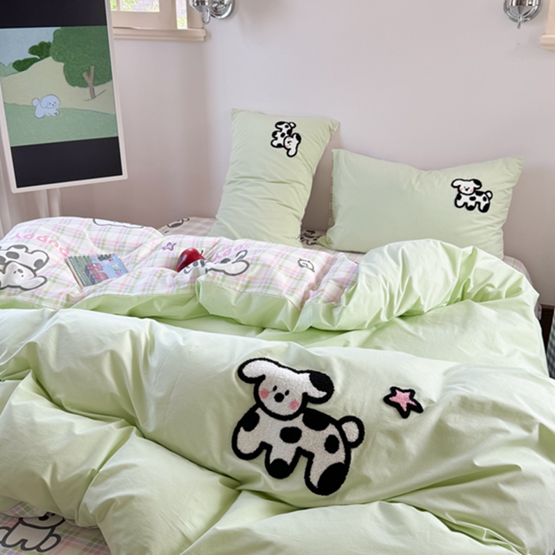 柚子 2024新款全棉水洗印加绣小可爱四件套 黑白狗