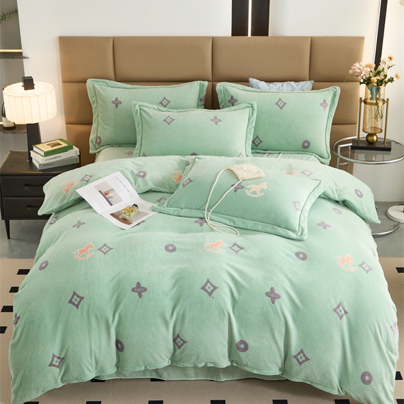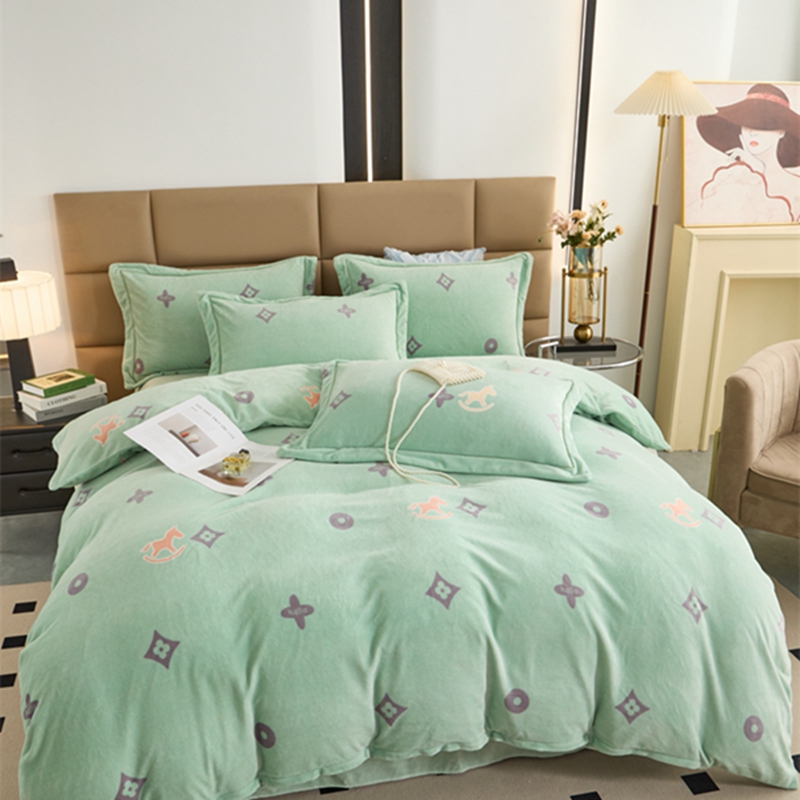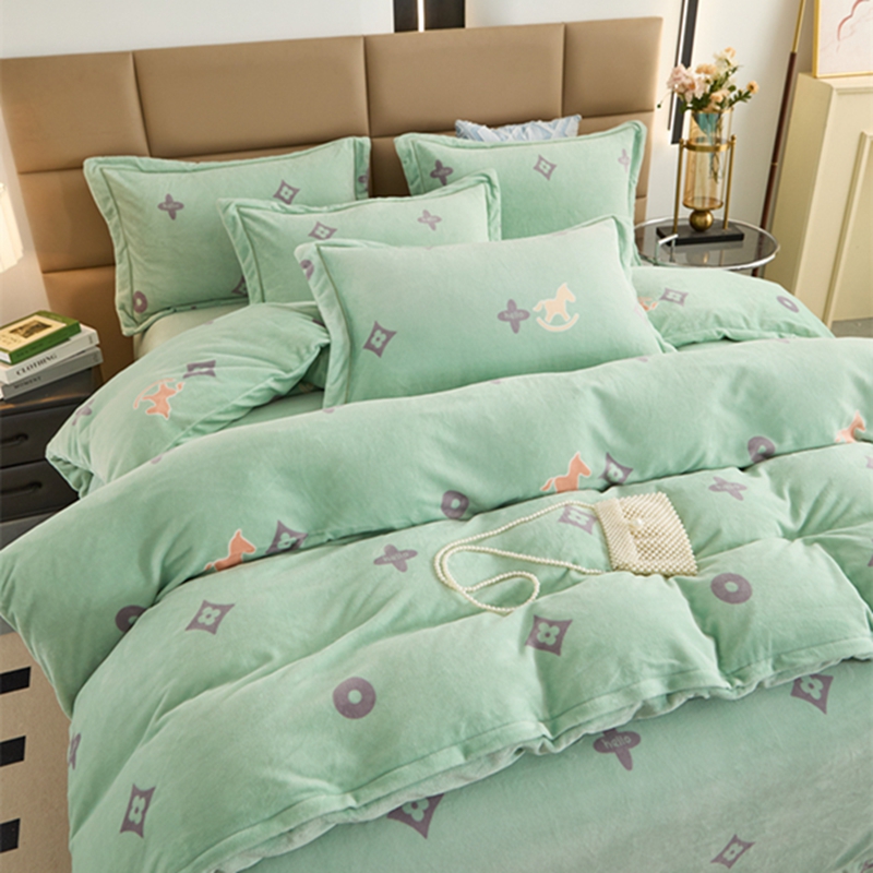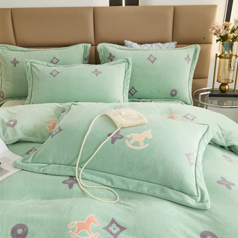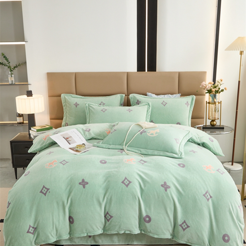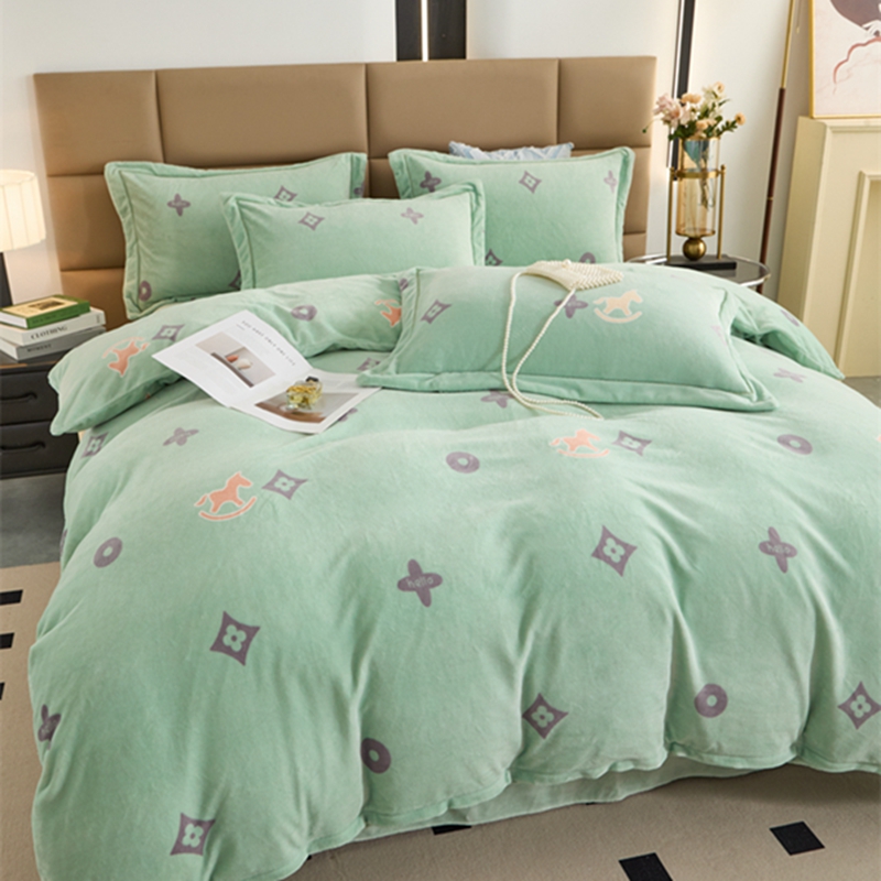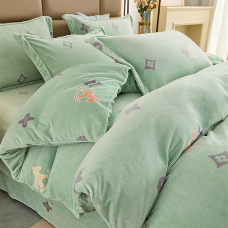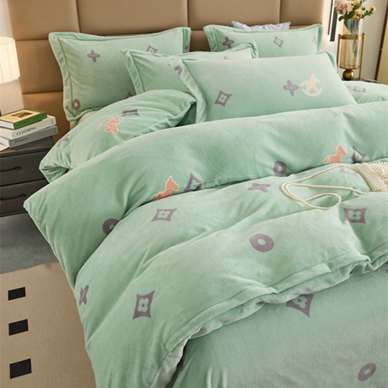 商品名称:卡迪亚 2024新款全消光牛奶绒印花四件套 幸运草-绿