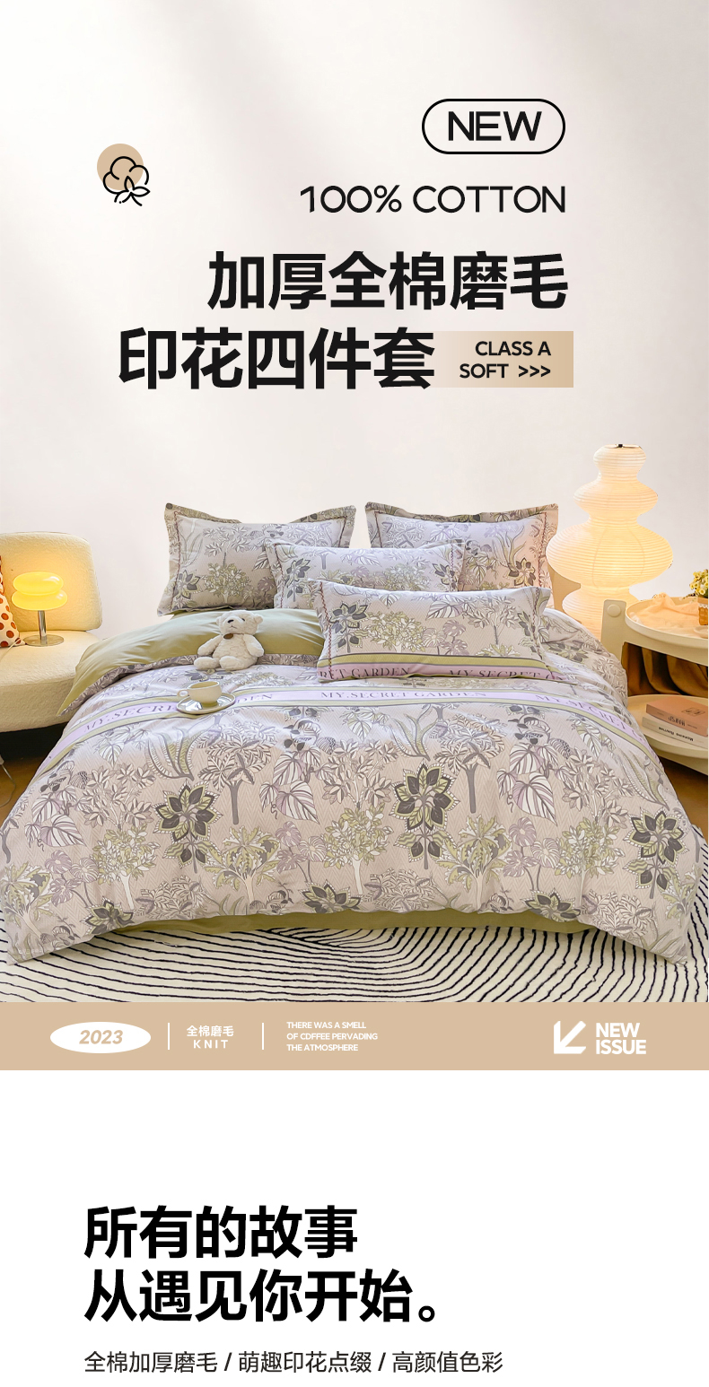 宜家坊 2024秋冬新款全棉超柔加厚生态磨毛四件套 米莉亚