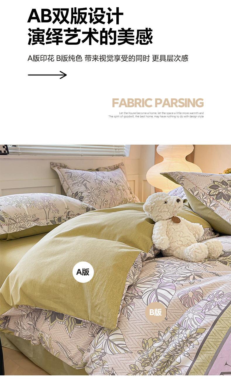 商品名称:宜家坊 2024秋冬新款全棉超柔加厚生态磨毛四件套 米莉亚