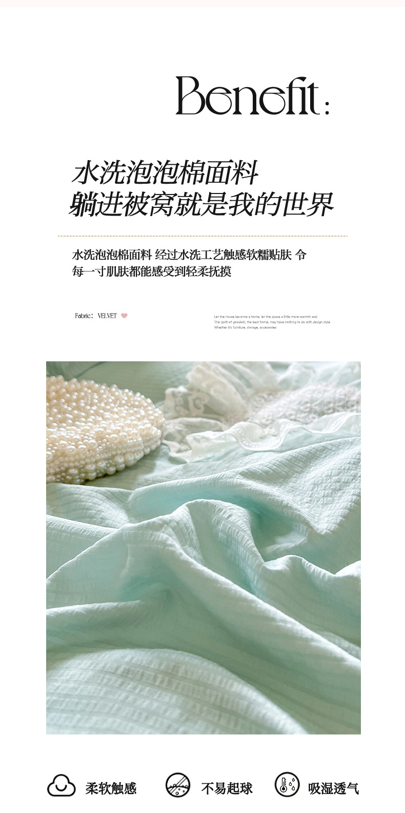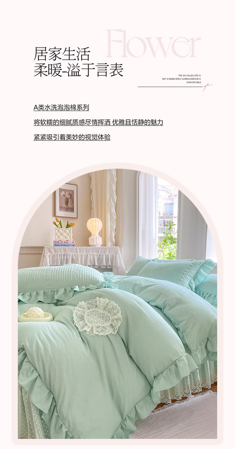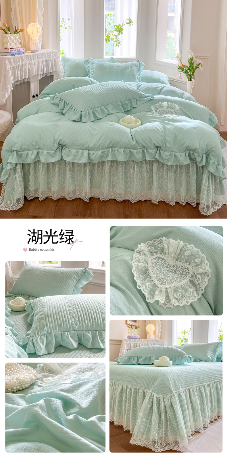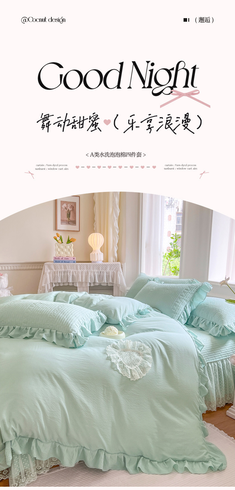 商品名称:乐朵2025春夏 妮可 A类 泡泡棉 夹棉床盖四件套(专版专利 控价188)湖光绿