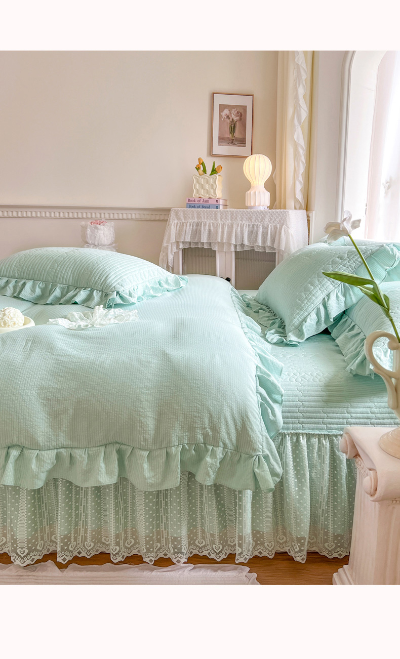 乐朵2025春夏 妮可 A类 泡泡棉 夹棉床盖四件套(专版专利 控价188)湖光绿