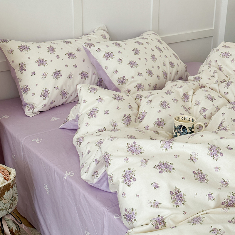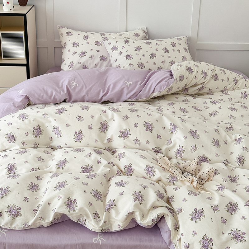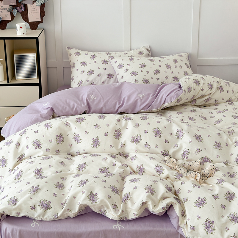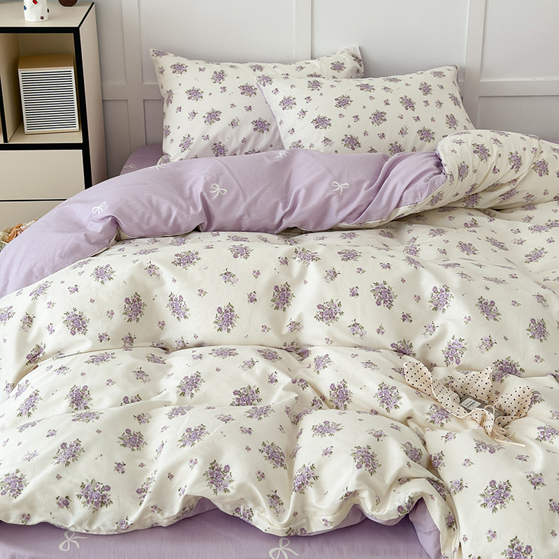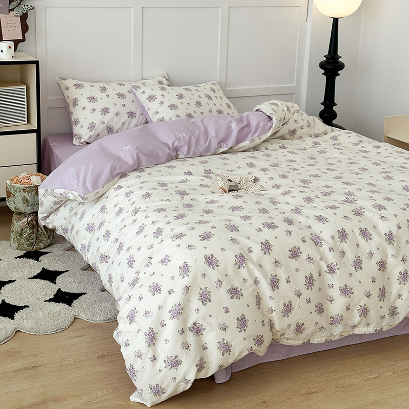 昔可家纺 2024新款13372全棉亲肤四件套-小清新系列 迷迭紫花