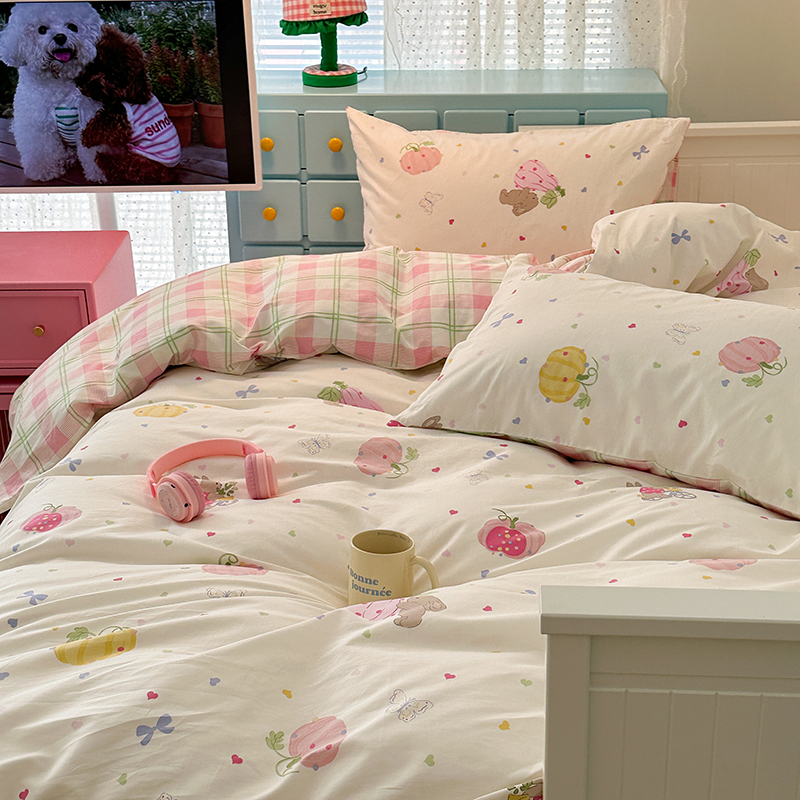 (总)昔可 2023新款学生季全棉四件套-小花系列,柏林少女,花野迷踪,少女粉草莓,微熏海棠,夏茉莉,小兰花,小小的樱桃,紫色果果,紫色葡萄