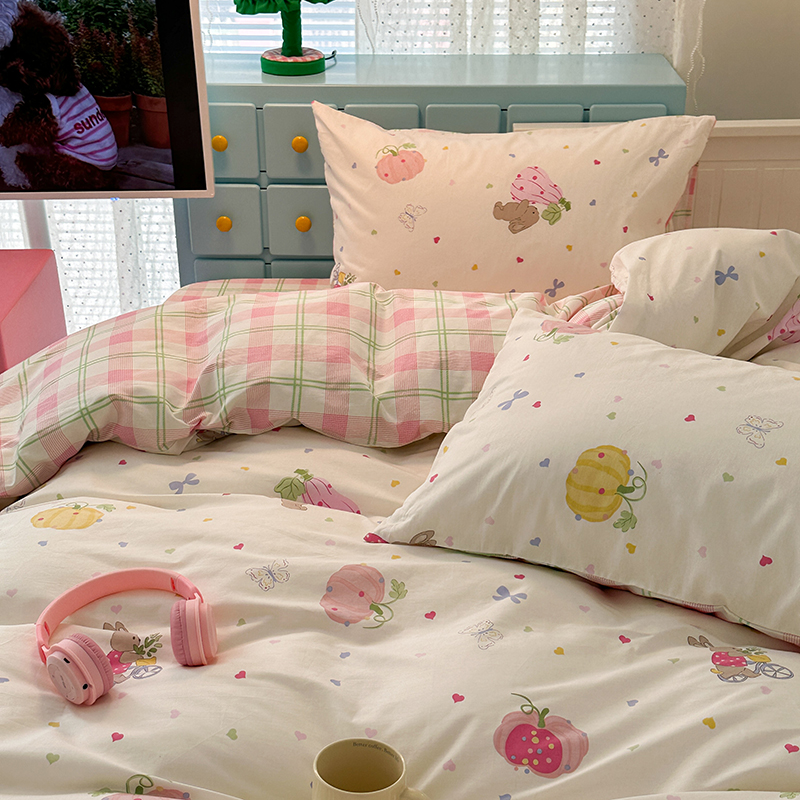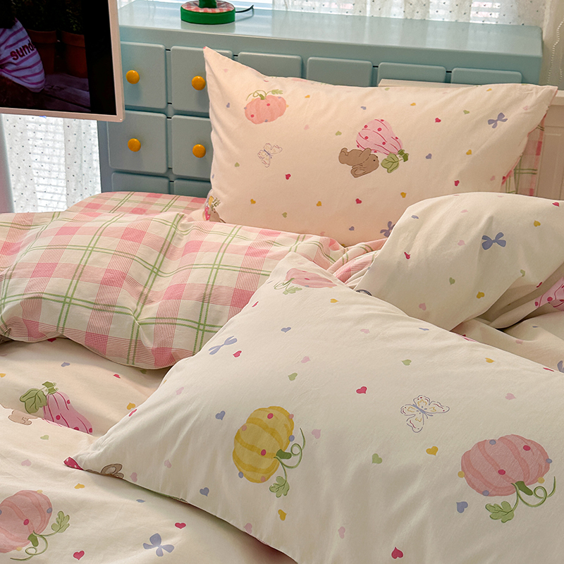 昔可家纺 2024新款13372全棉亲肤四件套-卡通系列 南瓜兔