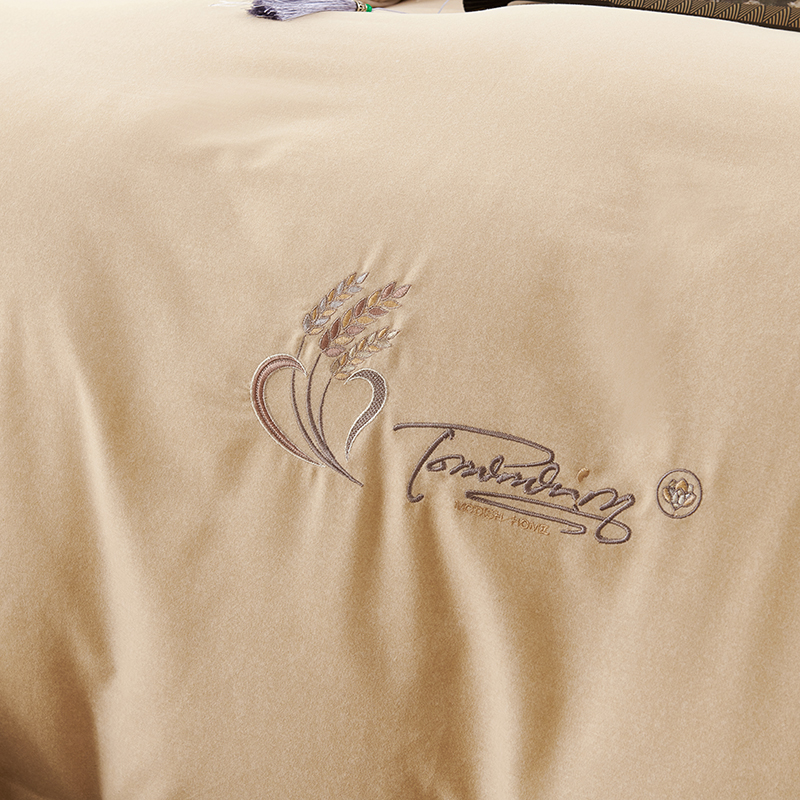 U品汇 2024新品生态加厚长绒棉纯棉绣花40S全棉磨毛刺绣四件套宽边款 七里香 -香槟金