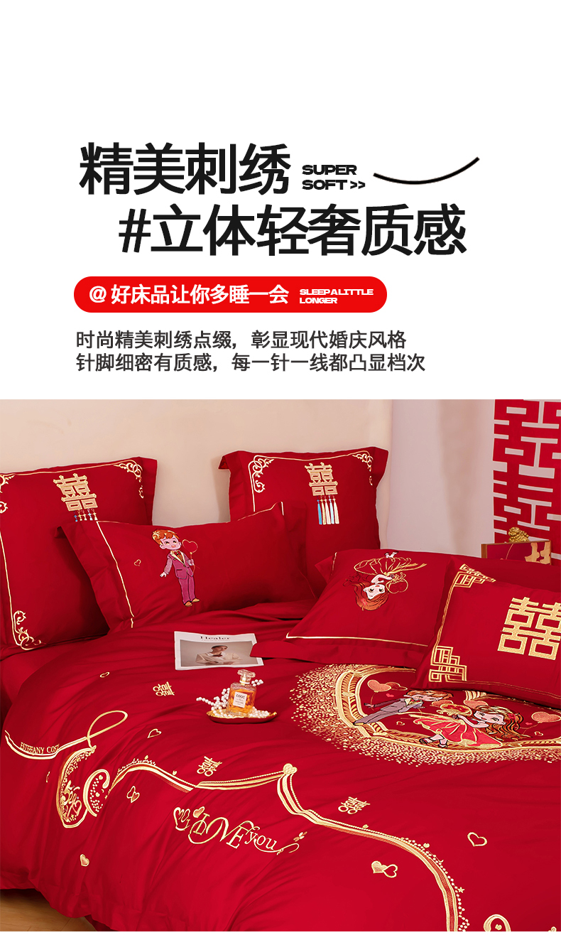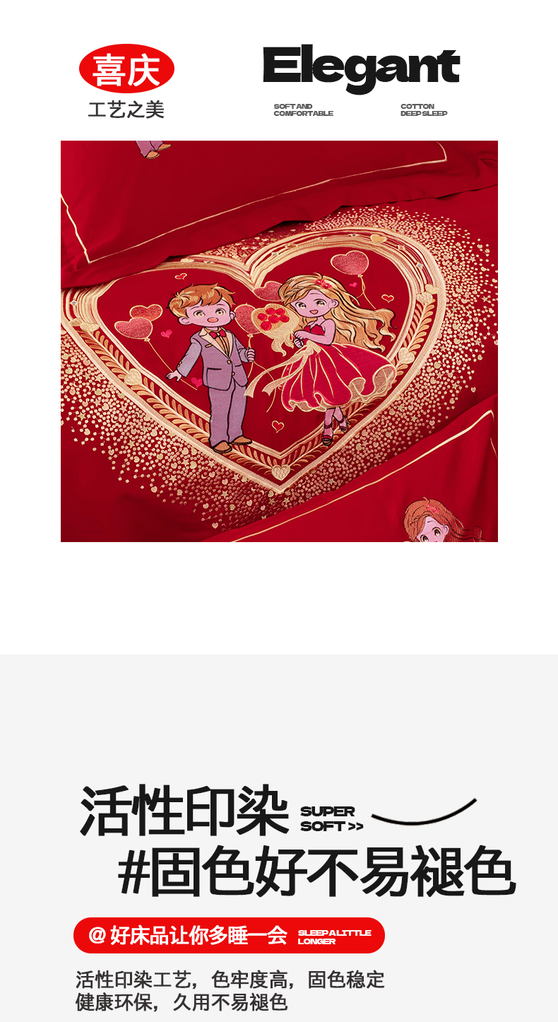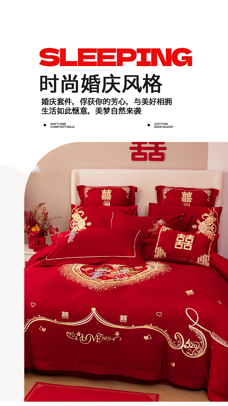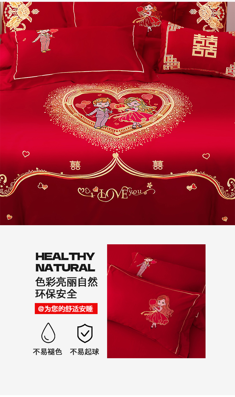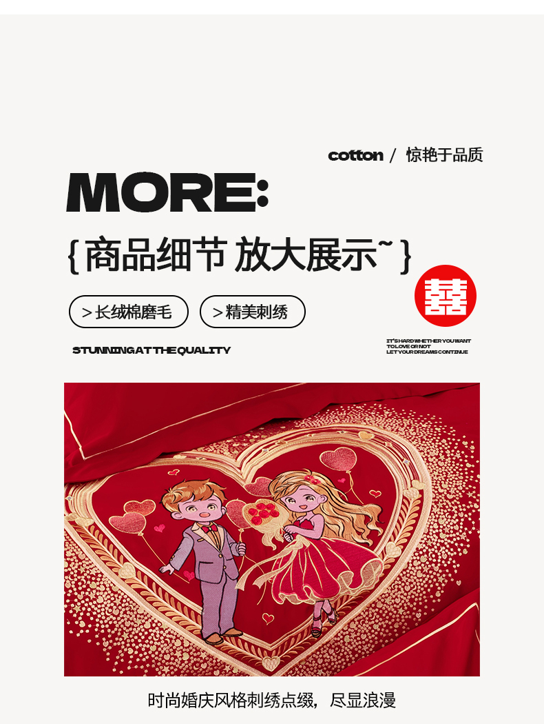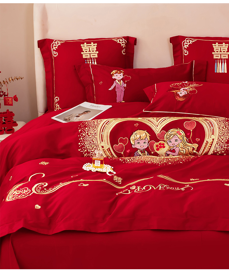 当前位置: 91家纺网 > 商品网购 > 床品套件 > 四件套 > 婚庆四件套 > 千禧家纺 2024新款双面长绒棉磨毛加厚保暖绣花婚庆套件 挚爱