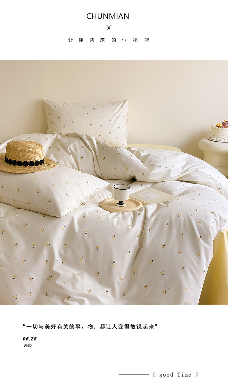 商品名称:Mr.pig猪先生水洗棉 2024新款全棉小清新四件套 黄樱桃