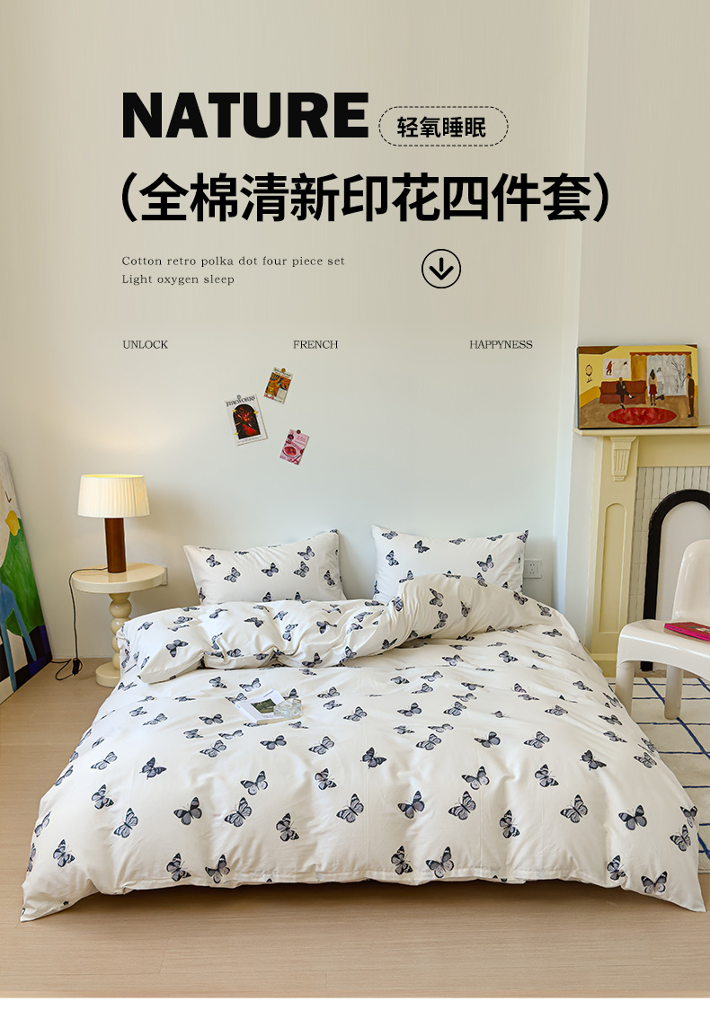 感遇家纺 2024新款全棉印花四件套 蝴蝶谷