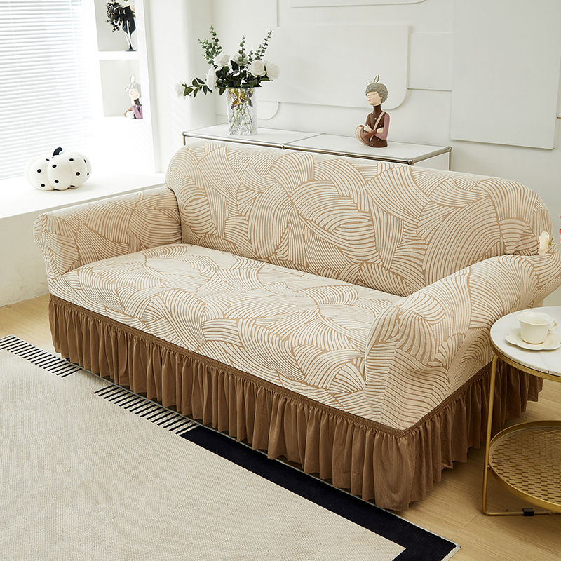 共鸣沙发套 2024新款臻品提花系列沙发套(裙摆款) 枫纹-驼色