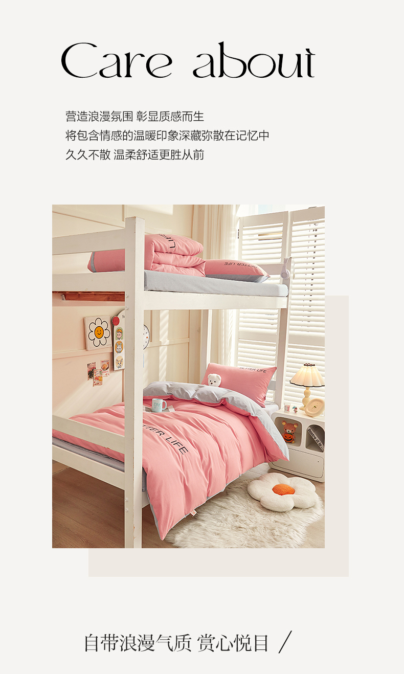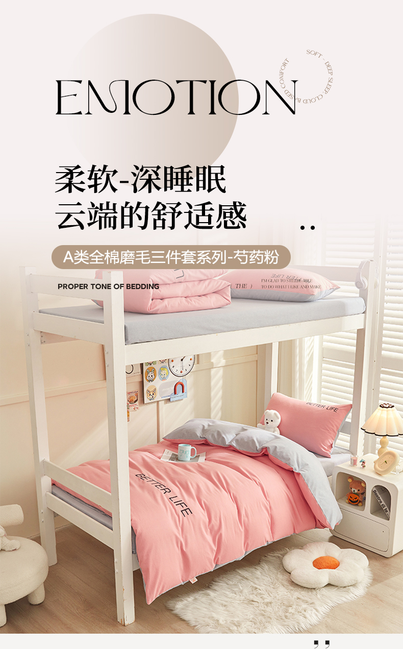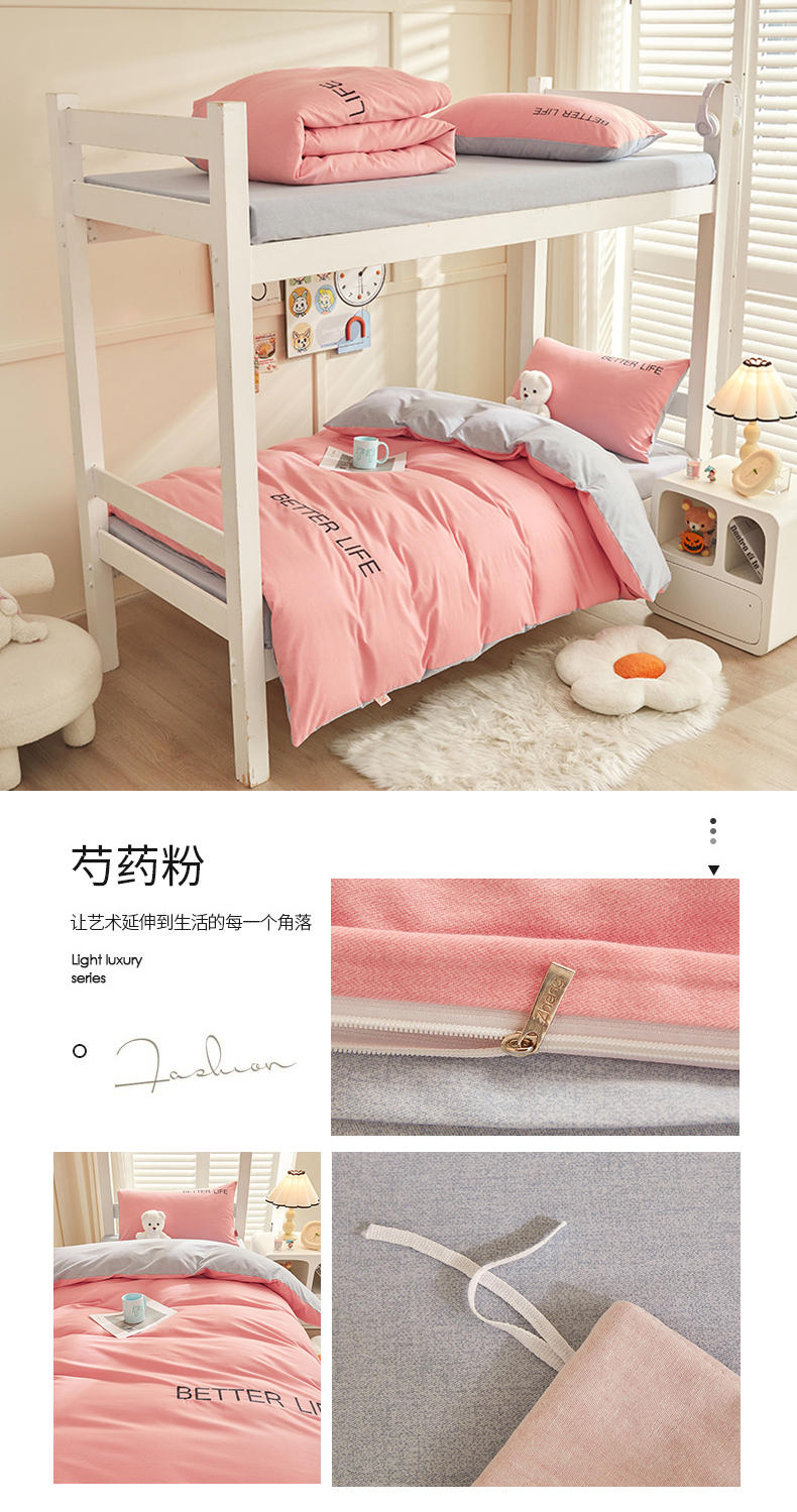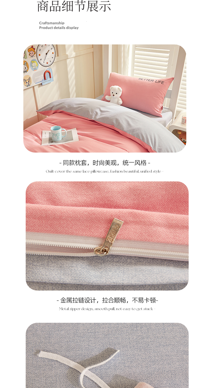 商品名称:七仙女家纺 2025新款全棉生态磨毛-前程似锦系列-学生三件套 芍药粉