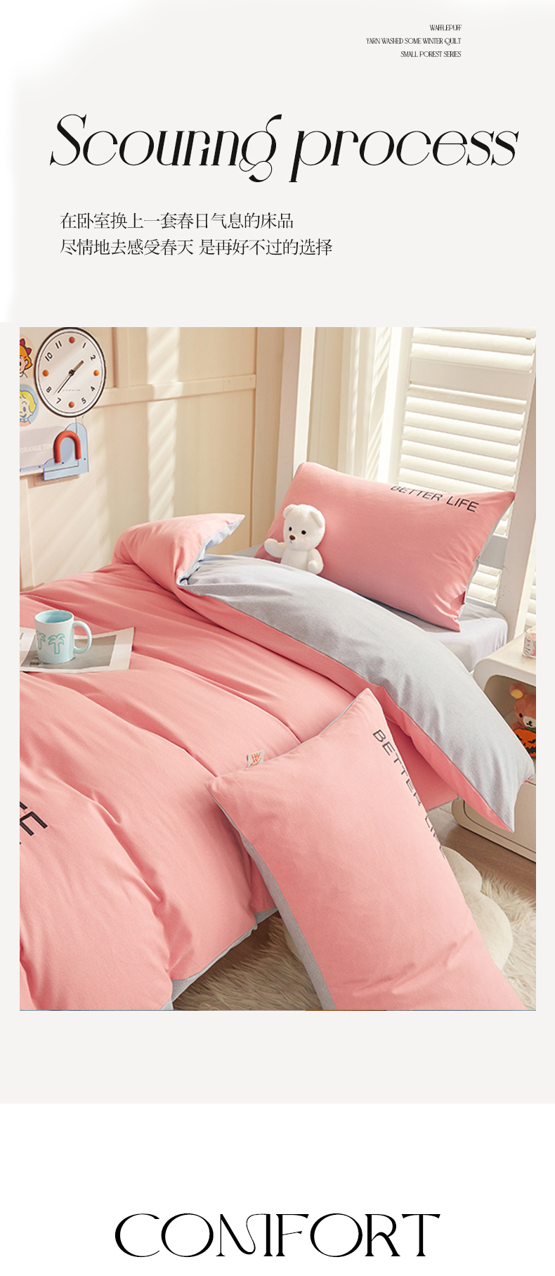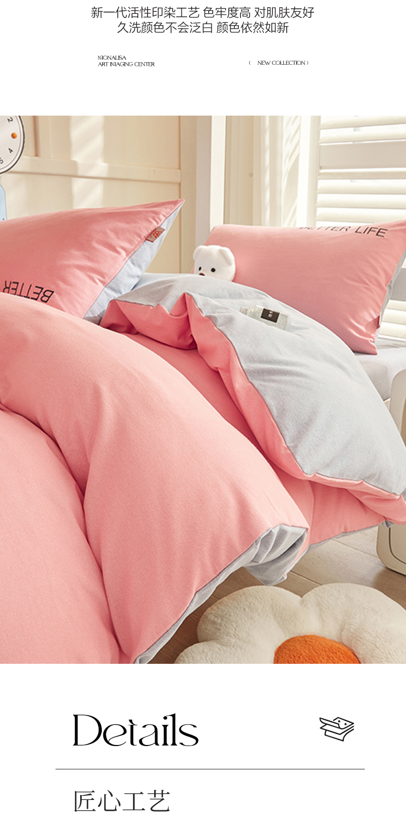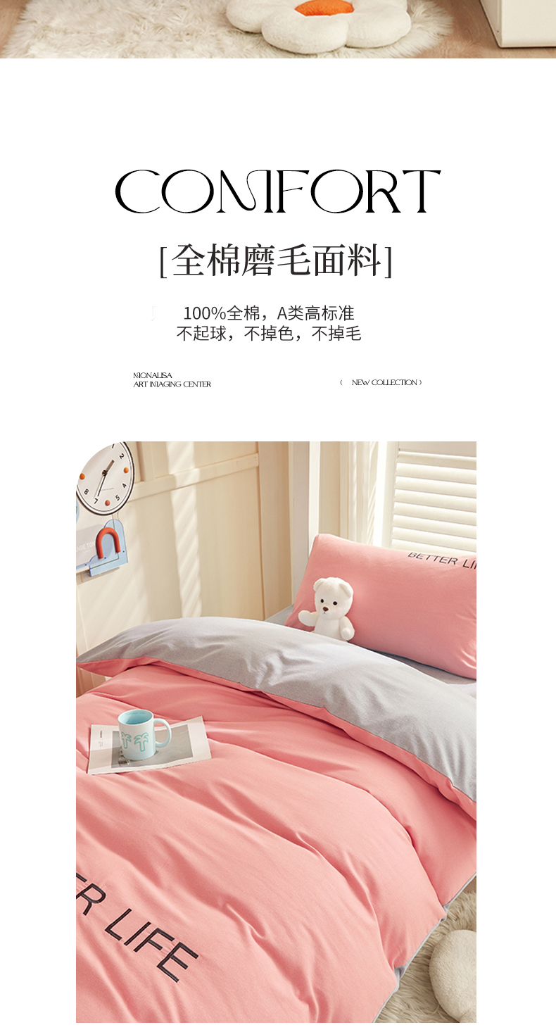 商品名称:七仙女家纺 2025新款全棉生态磨毛-前程似锦系列-学生三件套 芍药粉