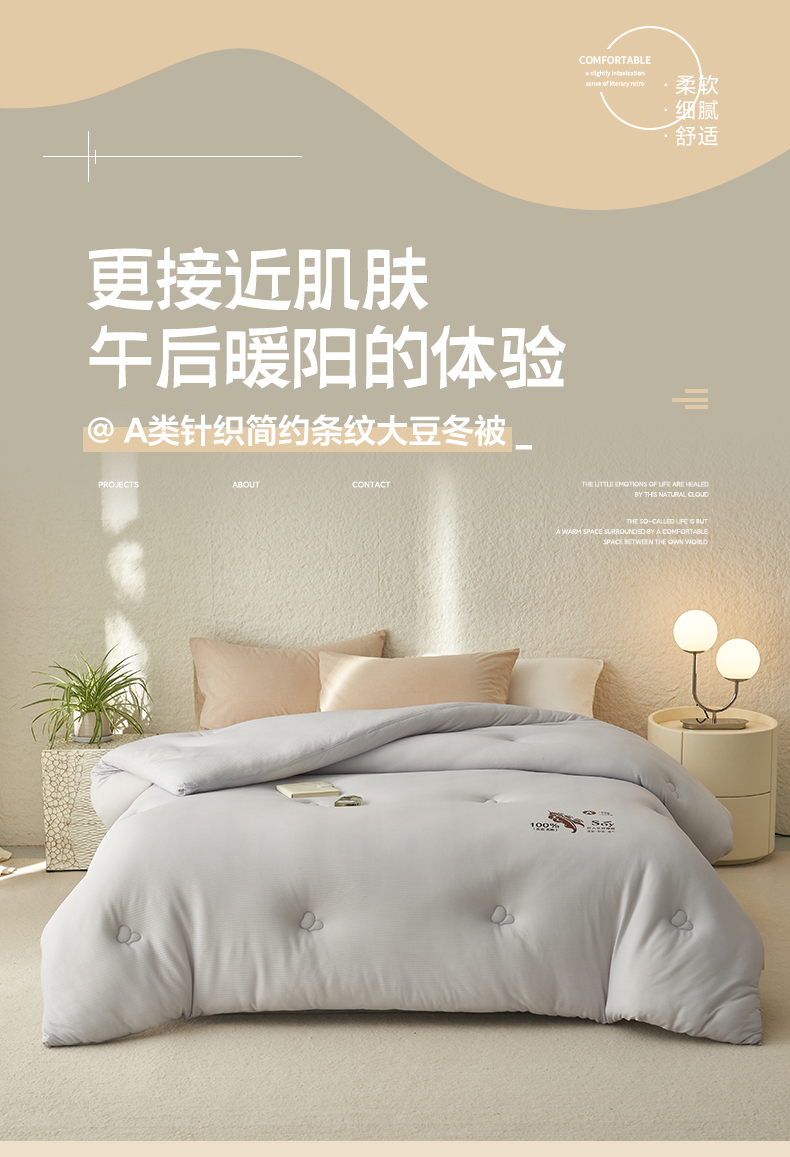 • 91家纺网 家纺一手货源 找家纺 2024新款b类针织简约条纹大豆冬被被子被芯 针织条纹-灰色