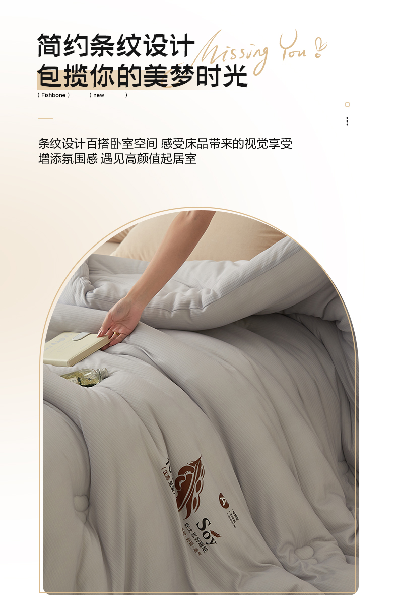 (总)子由家居 2025新款针织良品格拼色大豆纤维冬被被子被芯,良品格-白+灰,良品格-白+绿,良品格-白+杏,良品格-灰+驼