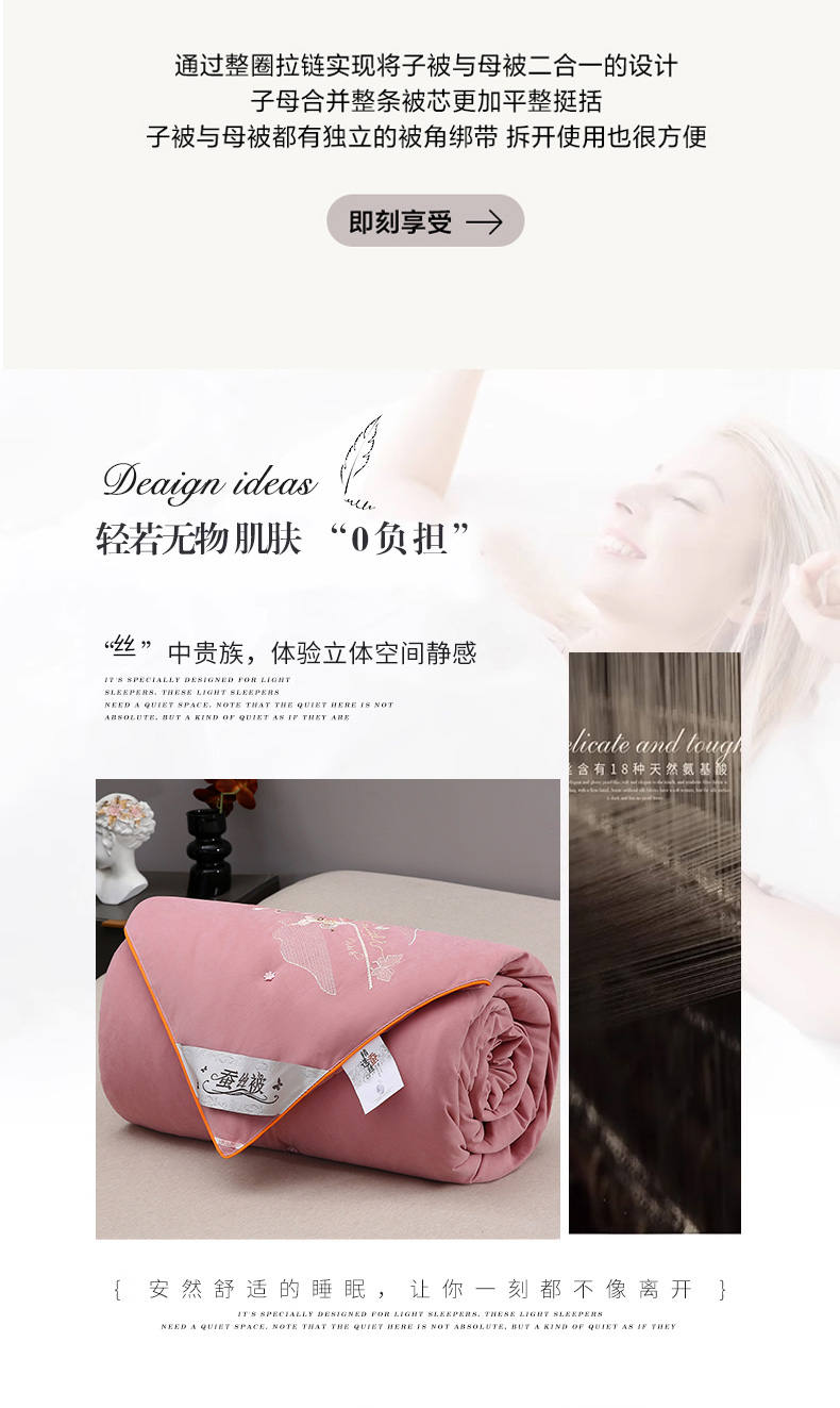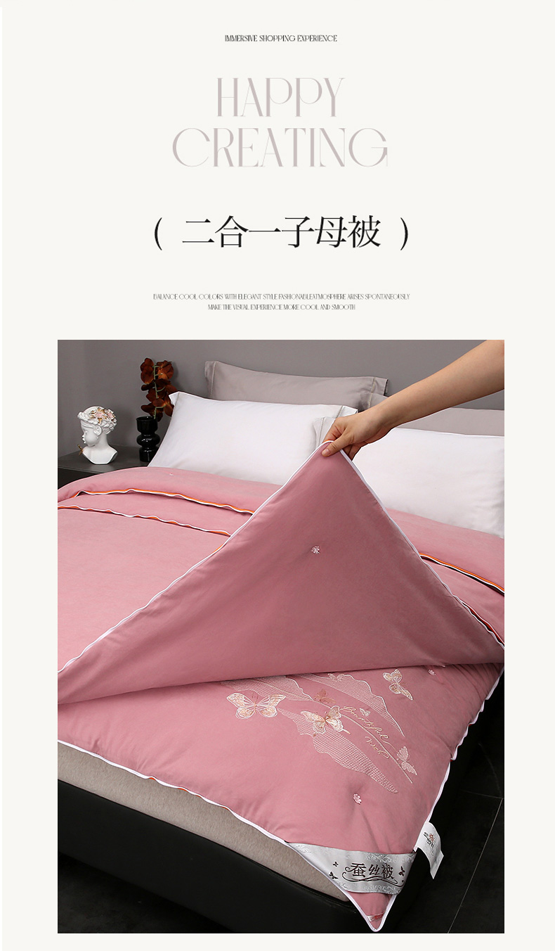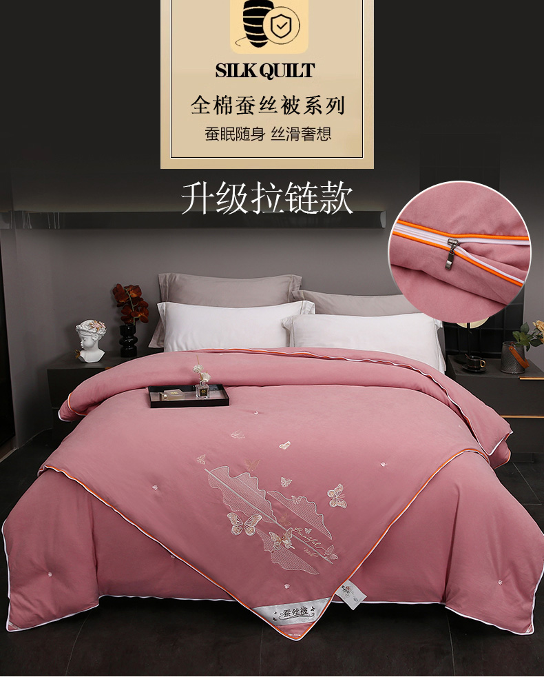 • 91家纺网 家纺一手货源 找家纺 (总)恒鑫 2025新款全棉绣花桑蚕丝冬被春秋被拉链二合一子母被,红色,青雾蓝,轻柔玉,夏云灰,香芋紫,月光白
