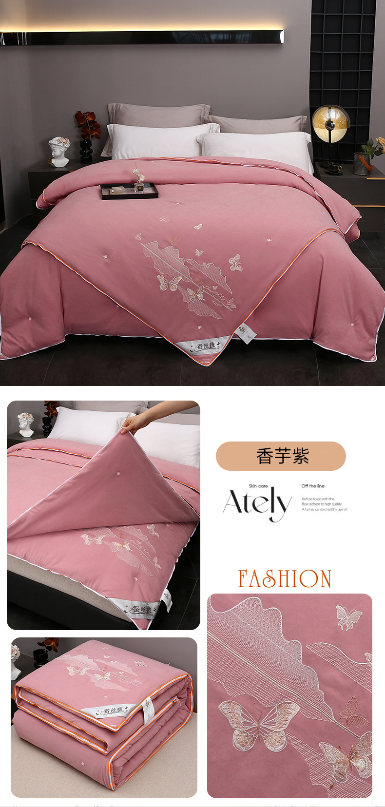 • 91家纺网 家纺一手货源 找家纺 恒鑫 2025新款全棉绣花桑蚕丝冬被春秋被拉链二合一子母被 香芋紫