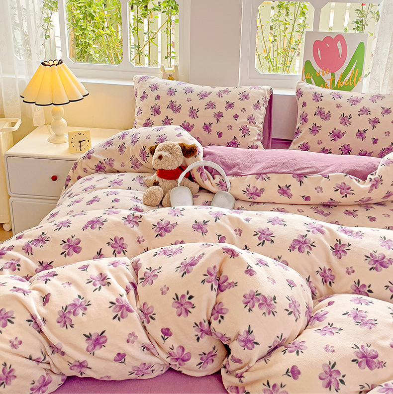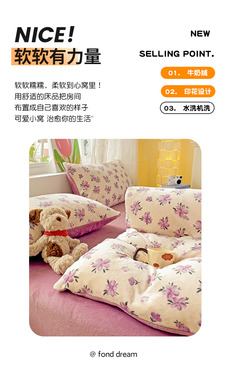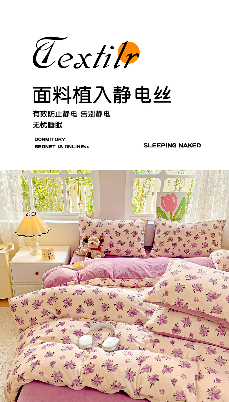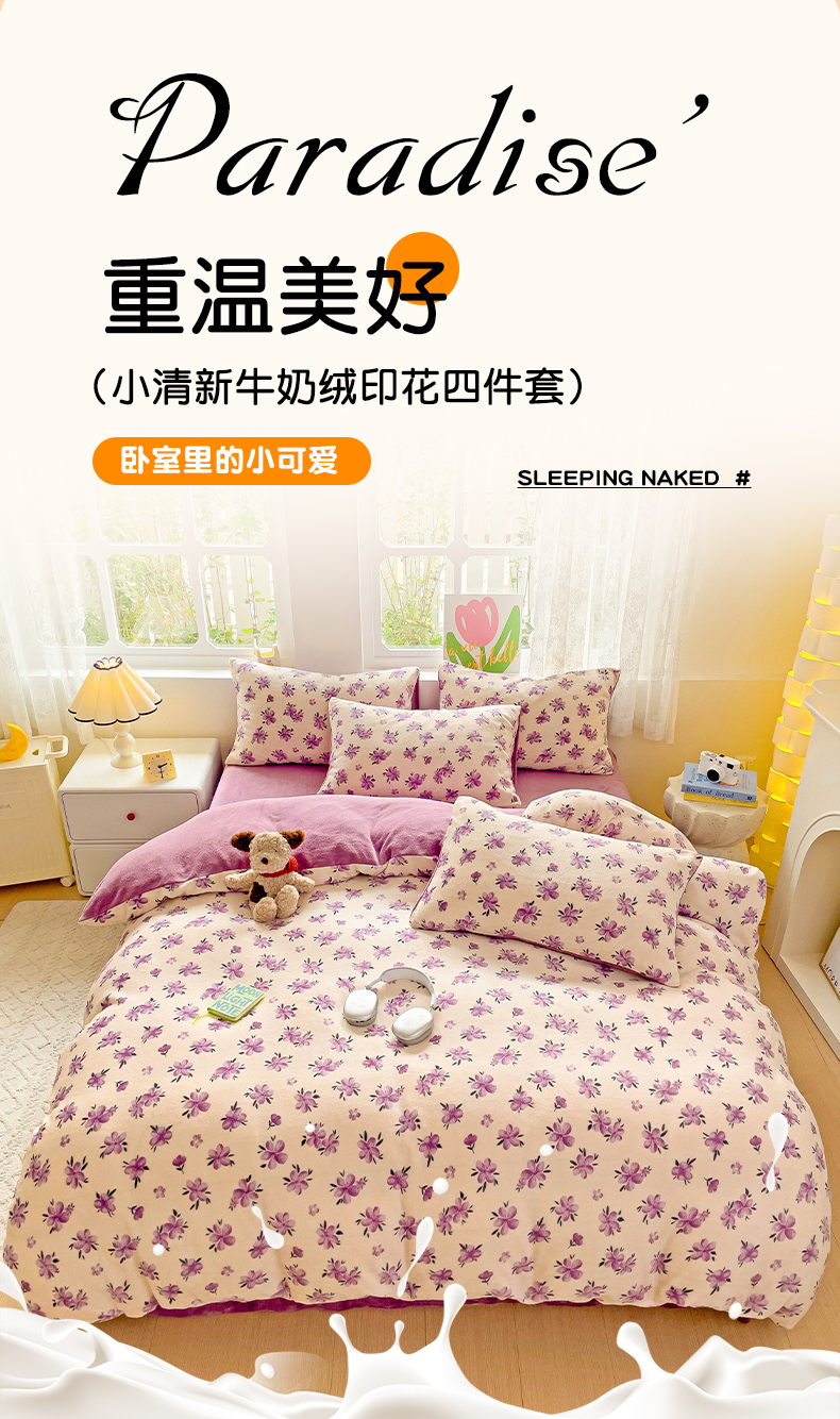 当前位置: 91家纺网 > 商品网购 > 床品套件 > 四件套 > 牛奶绒四件套 > 优选良品 2025新款小清新加厚高克重牛奶绒四件套直播热款电商热款 江南溪暮