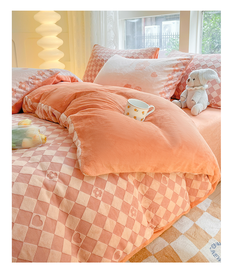 雅居纺家纺 2024新款立体雕花牛奶绒四件套-幸运花系列 幸运花-桔