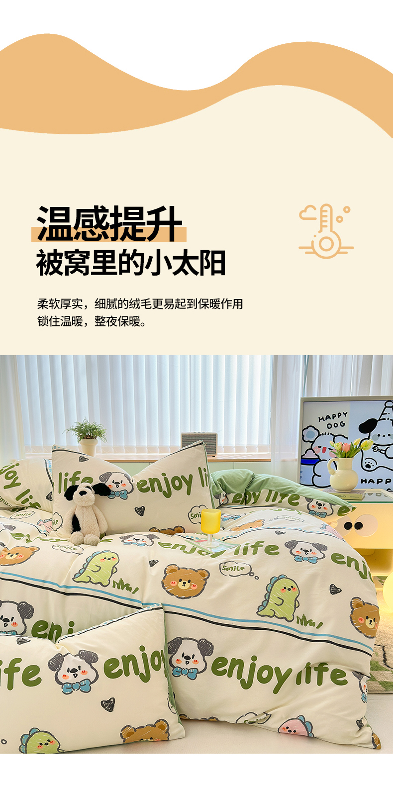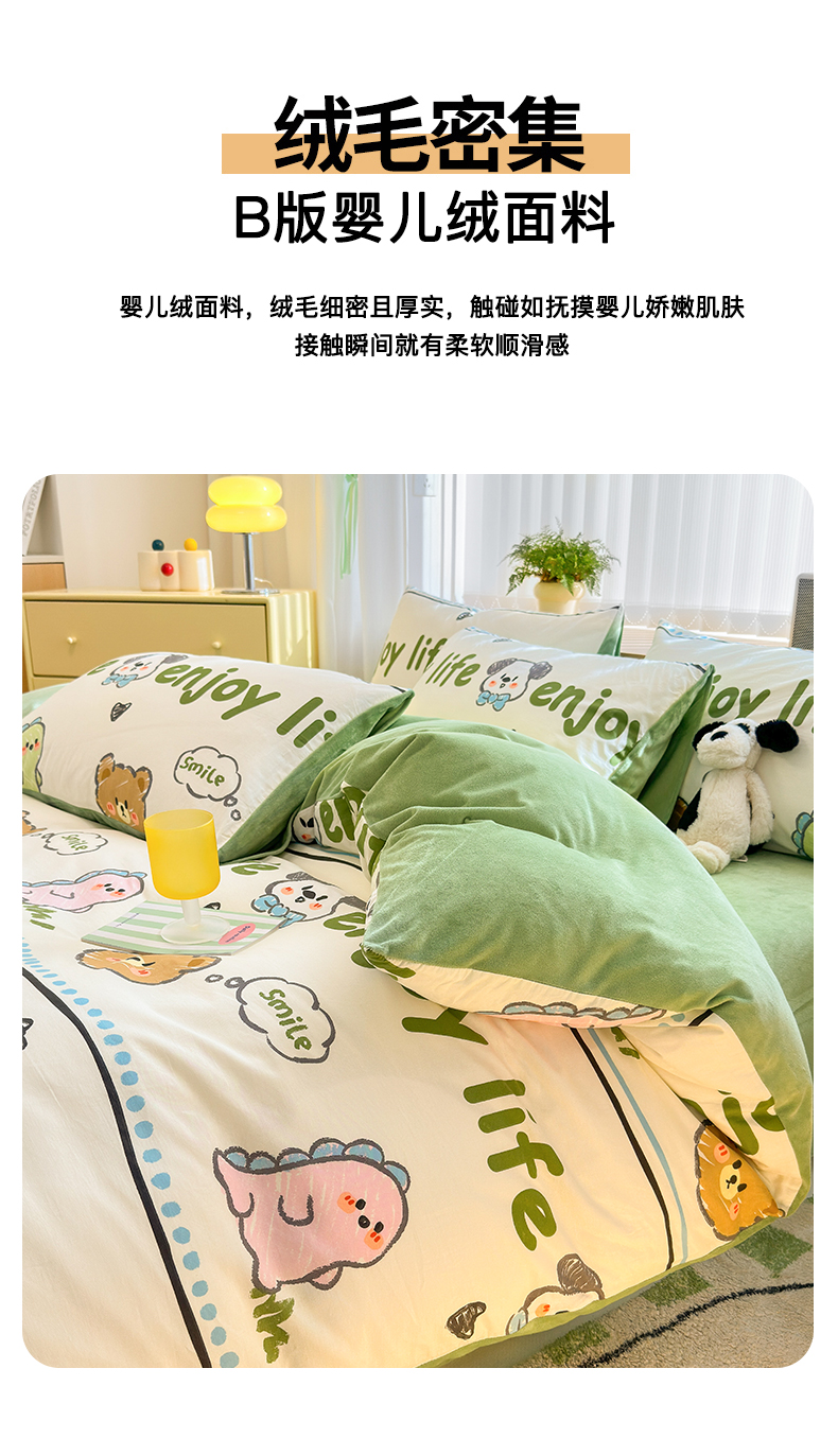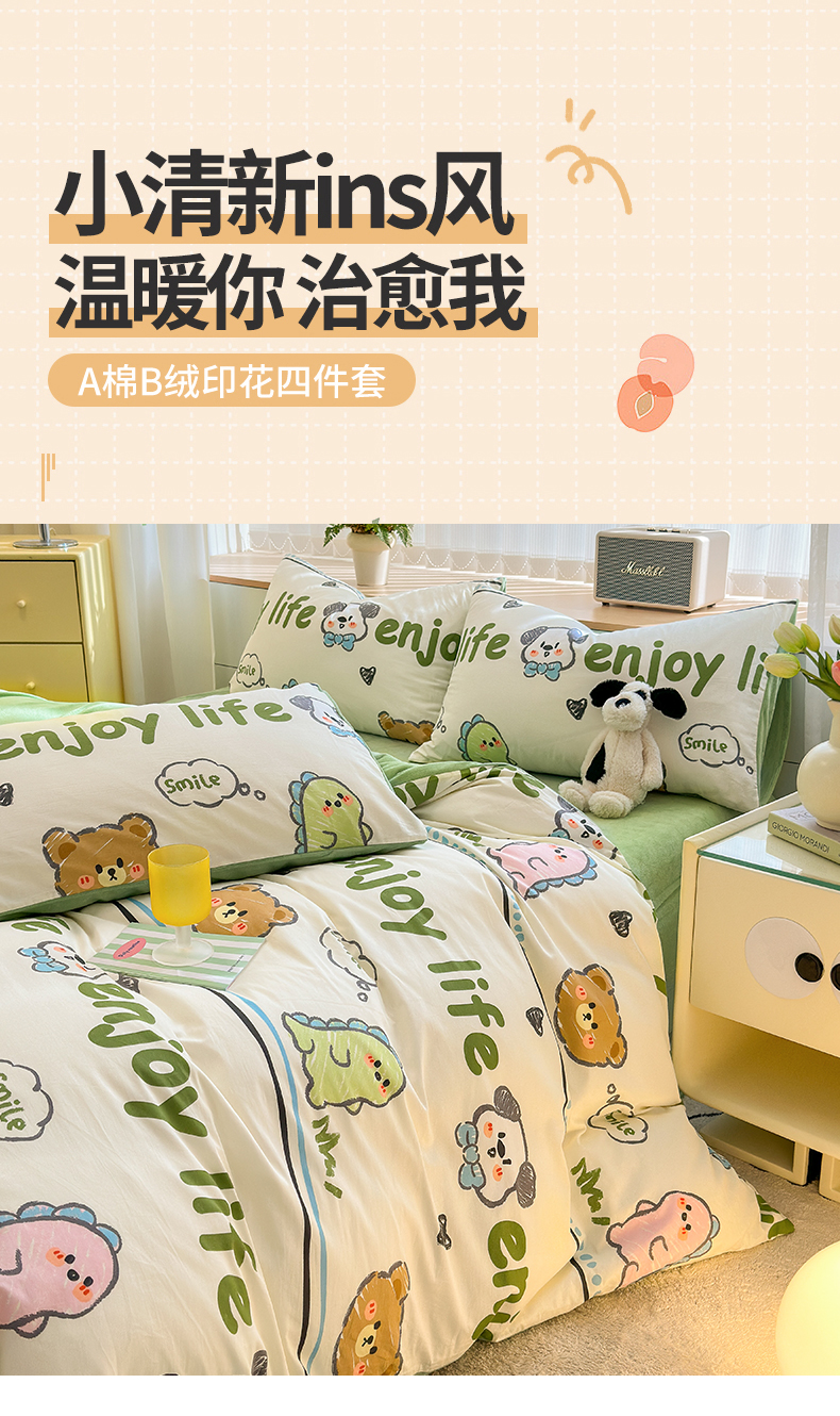 当前位置: 91家纺网 > 商品网购 > 床品套件 > 四件套 > 其它四件套 > 清雅福 2024新款小清新ins棉加绒印花四件套系列-棉绒风格二 哈哈乐园