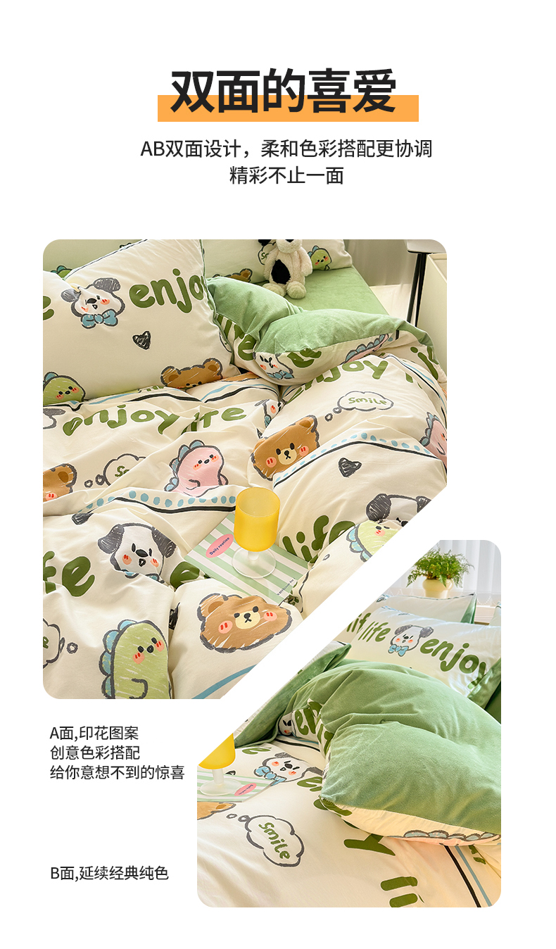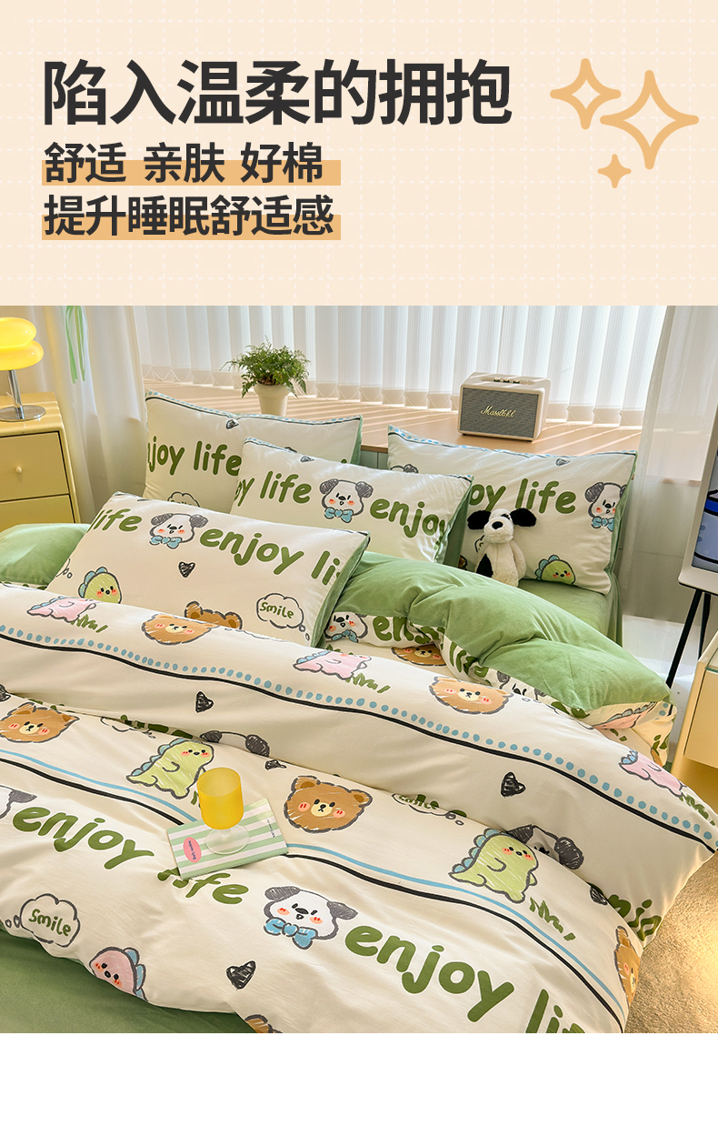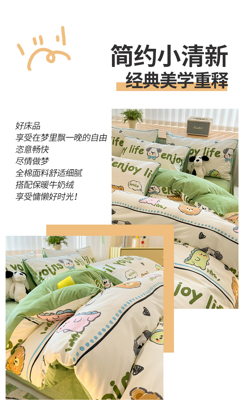 当前位置: 91家纺网 > 商品网购 > 床品套件 > 四件套 > 其它四件套 > 清雅福 2024新款小清新ins棉加绒印花四件套系列-棉绒风格二 哈哈乐园