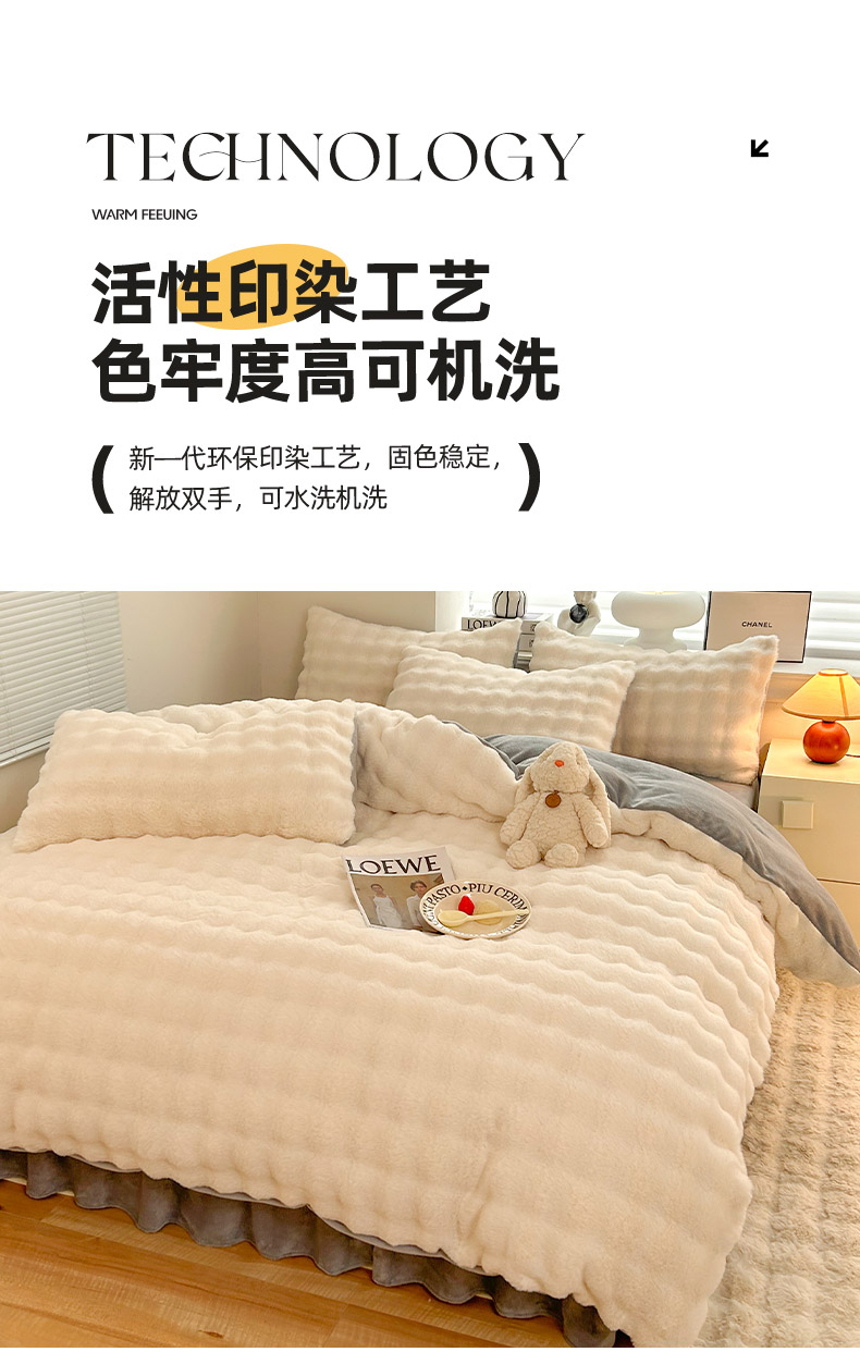商品名称:欧冠家纺 2024秋冬新款纯色泡泡绒和七彩泡泡床裙款四件套 蓝泡泡-奶白灰