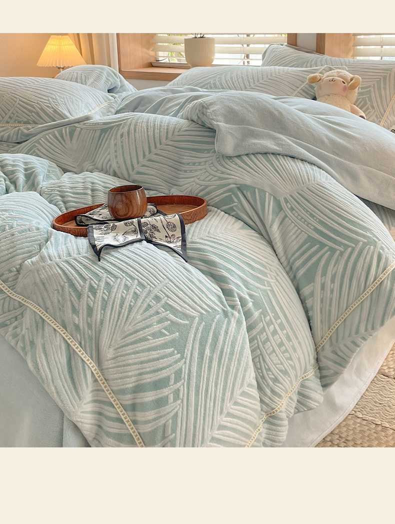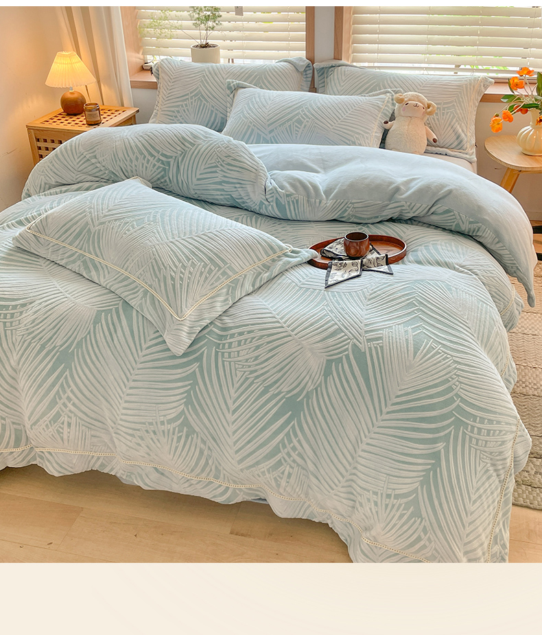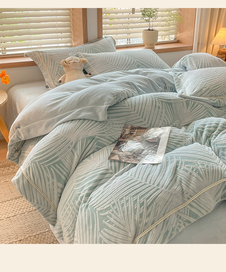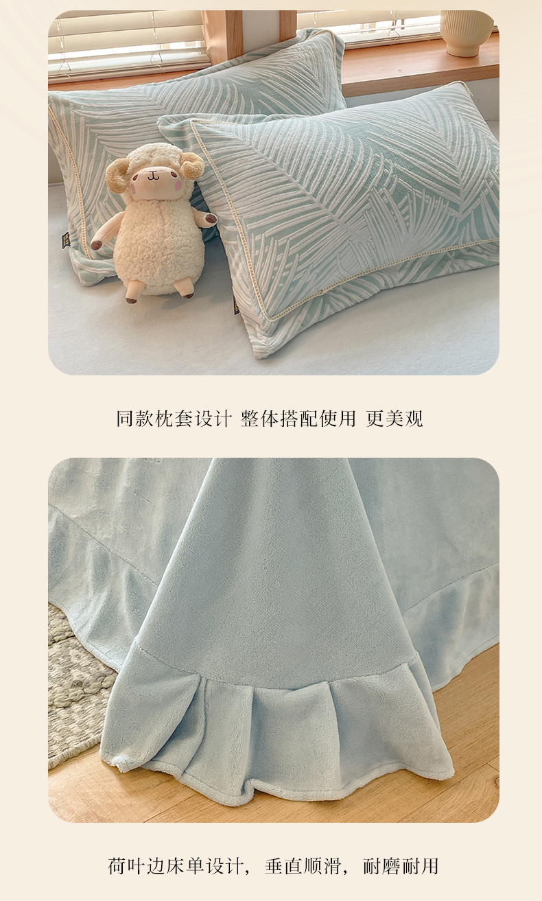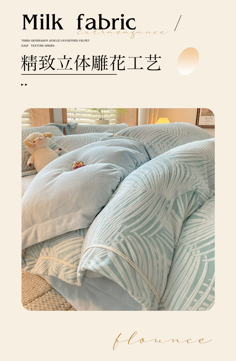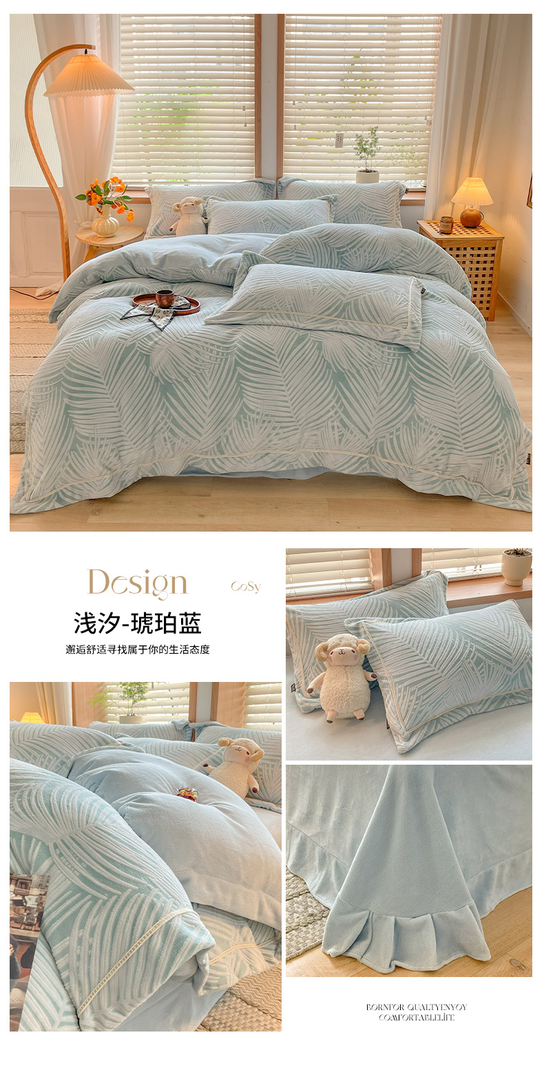 商品名称:简如 2025新款A类加厚冰岛立体雕花牛奶绒浮雕绒四件套(有买家秀) 浅汐-琥珀蓝
