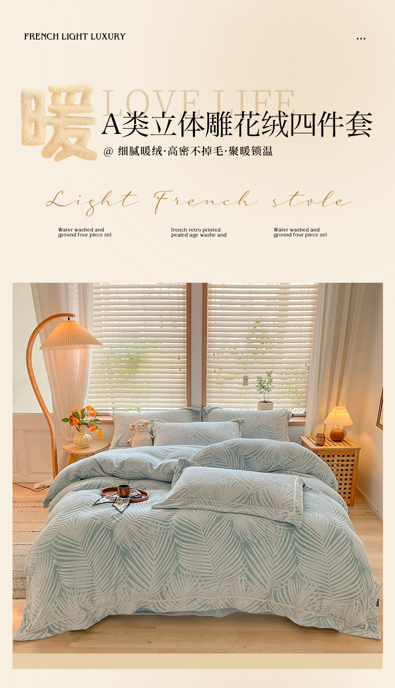 (总)简如 2025新款A类230克加厚立体雕花绒四件套,安吉拉-粉玉,安吉拉-海鸥灰,安吉拉-浅灰,安吉拉-浅绿,安吉拉-天空蓝,米兰-粉,米兰-米驼,米兰-玉,米兰-中灰