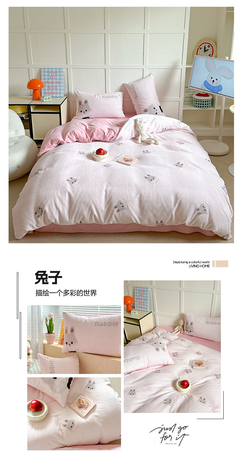 美乐迪家纺 2024新款高克重牛奶绒卡通印花四件套 兔子