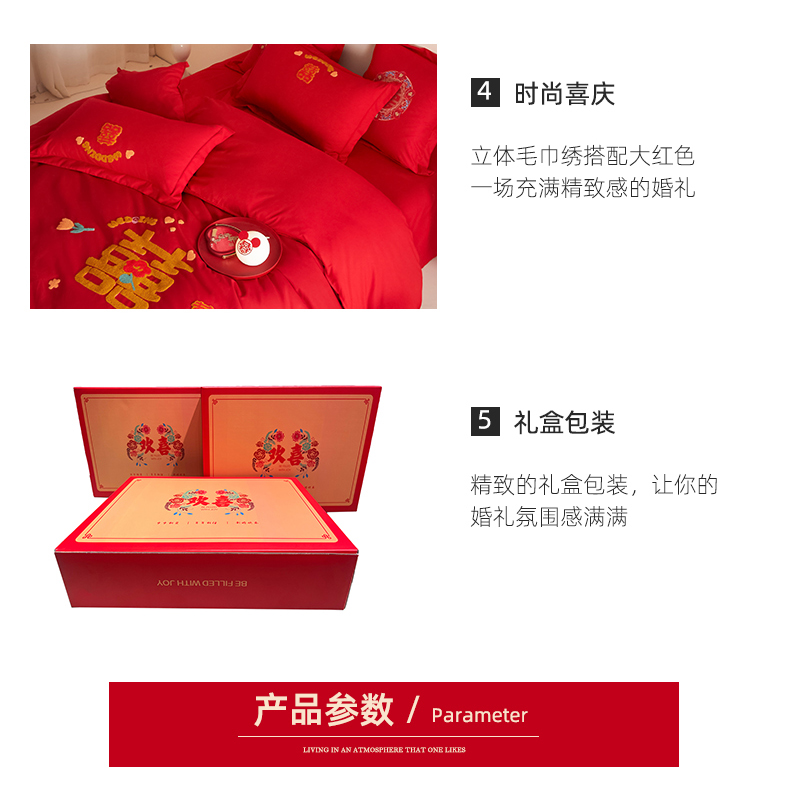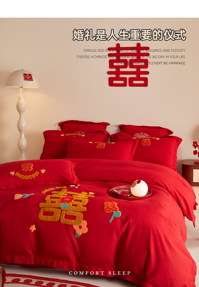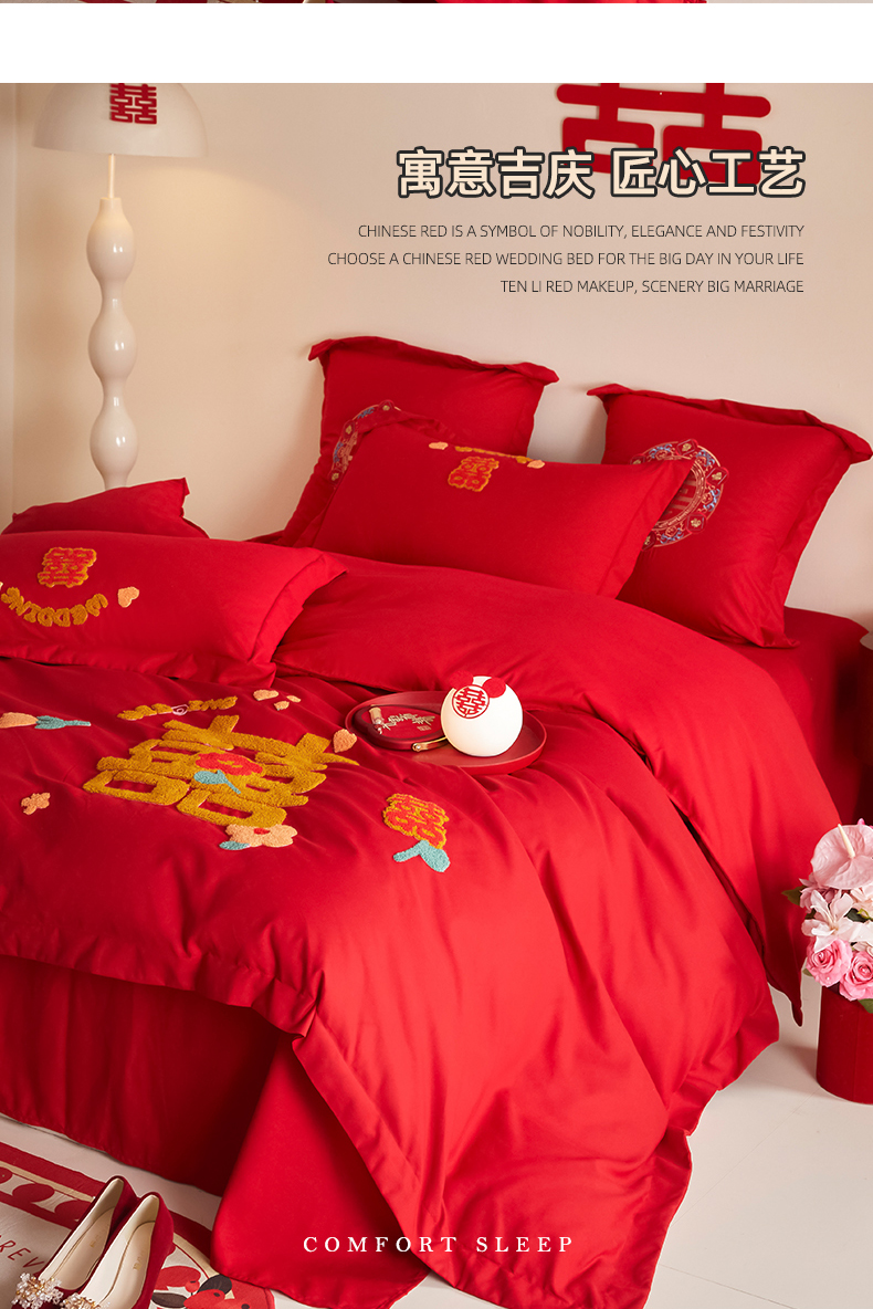 当前位置: 91家纺网 > 商品网购 > 床品套件 > 四件套 > 婚庆四件套 > 玉雅家纺 2025新款中式复古红黑格调刺绣婚庆四件套 婚庆毛巾绣-囍多多