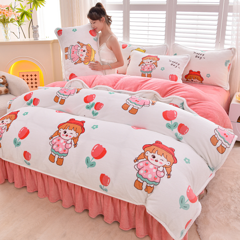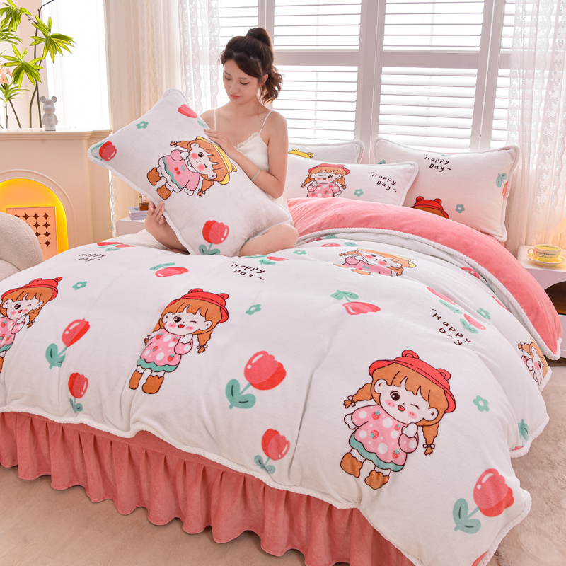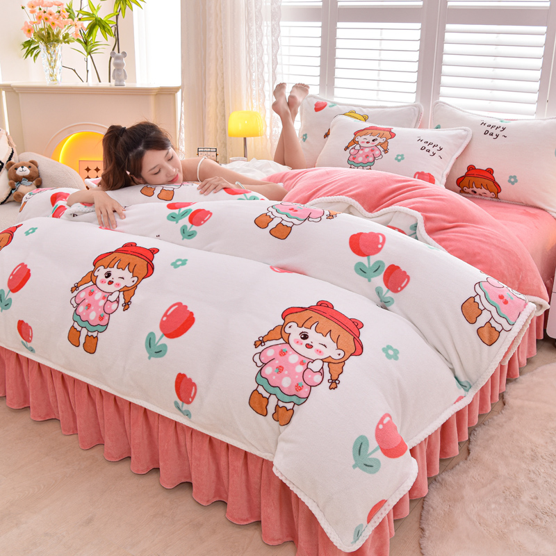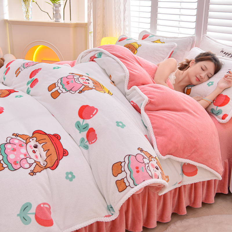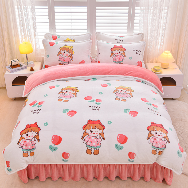 梦莱情 2024新款190克7斤半牛奶绒四件套小女孩