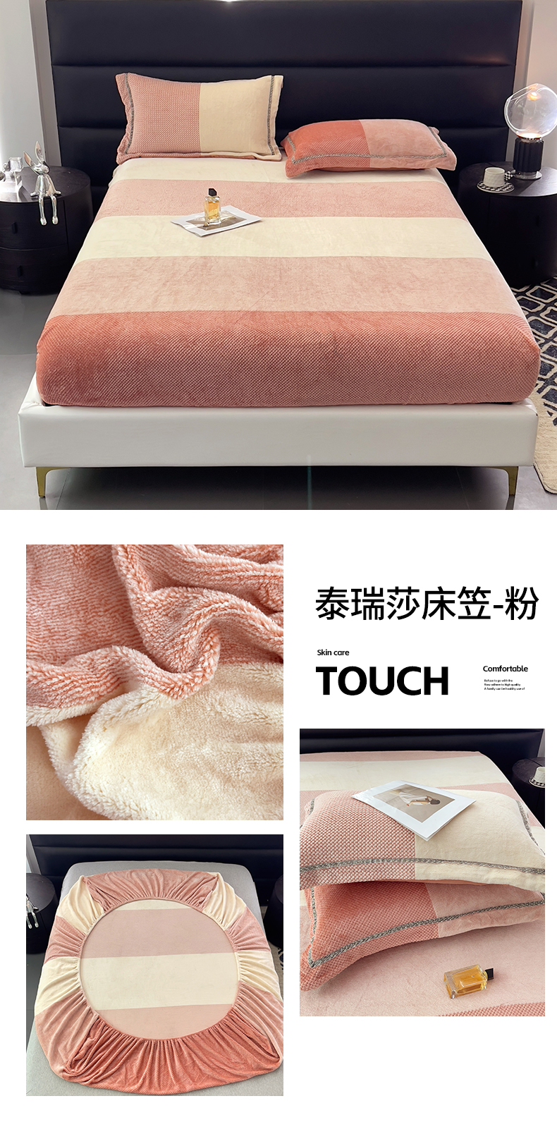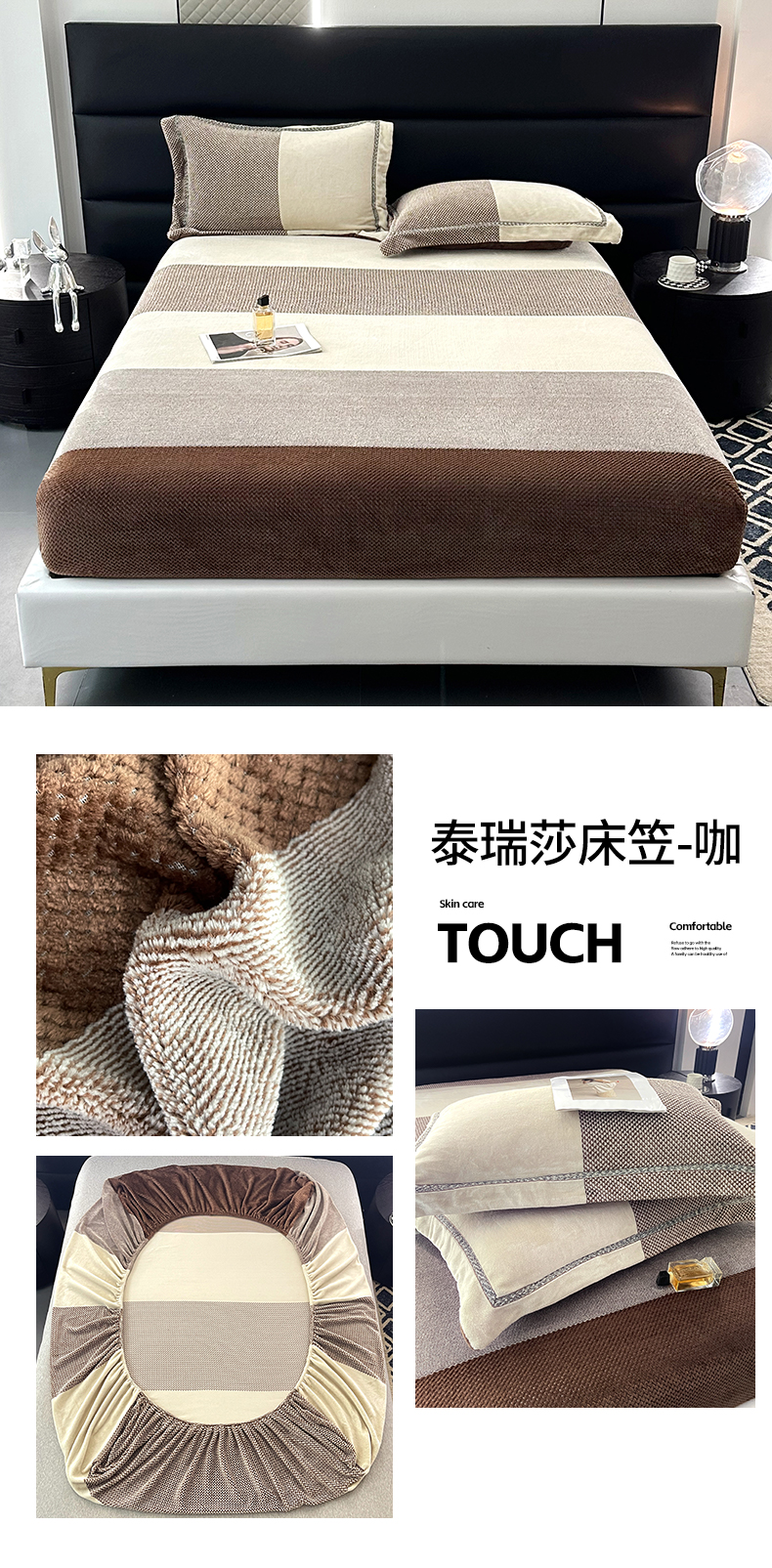(总)网客家纺 2024新款高克重暖茸绒色织提花床笠-泰瑞莎